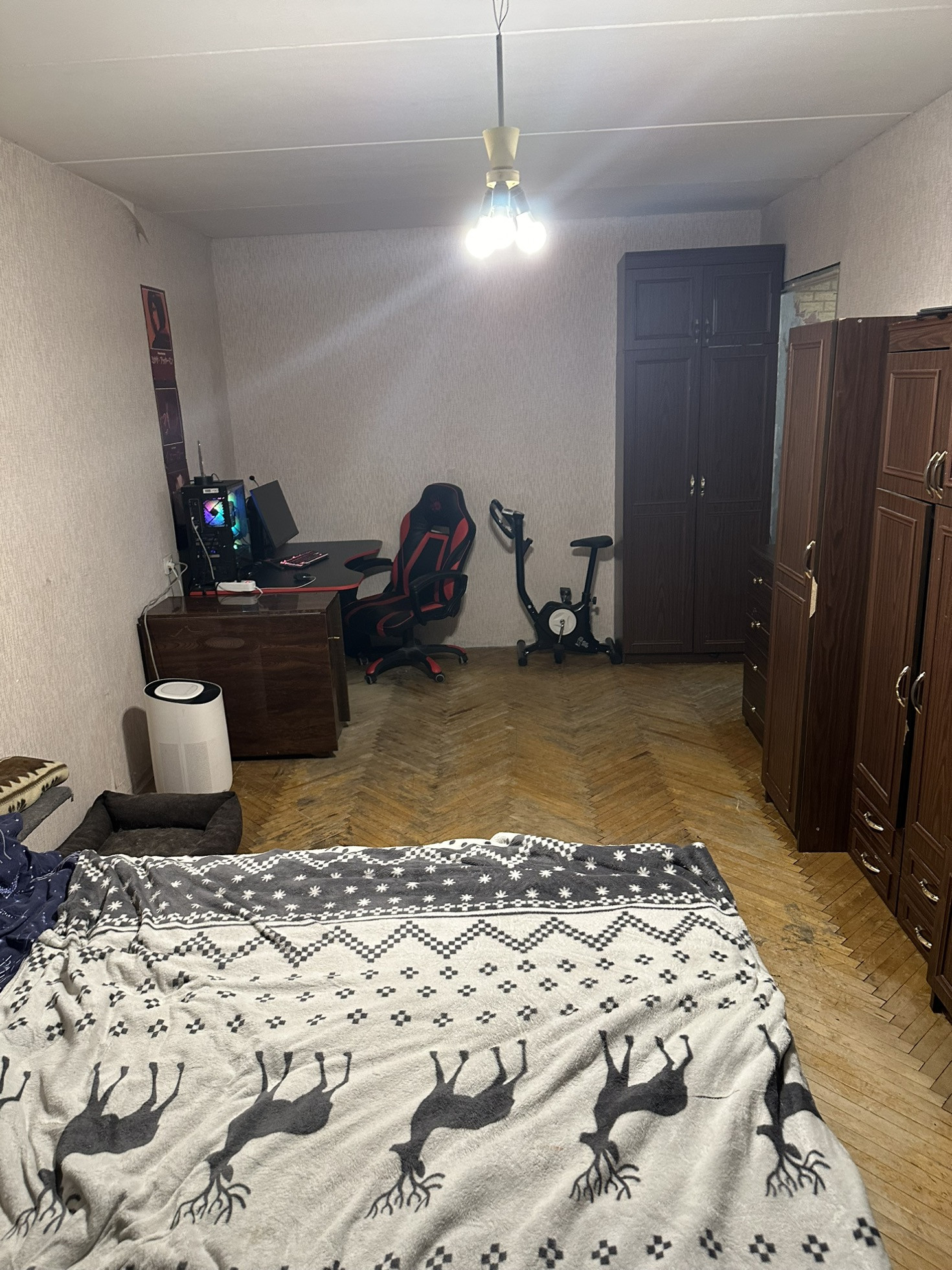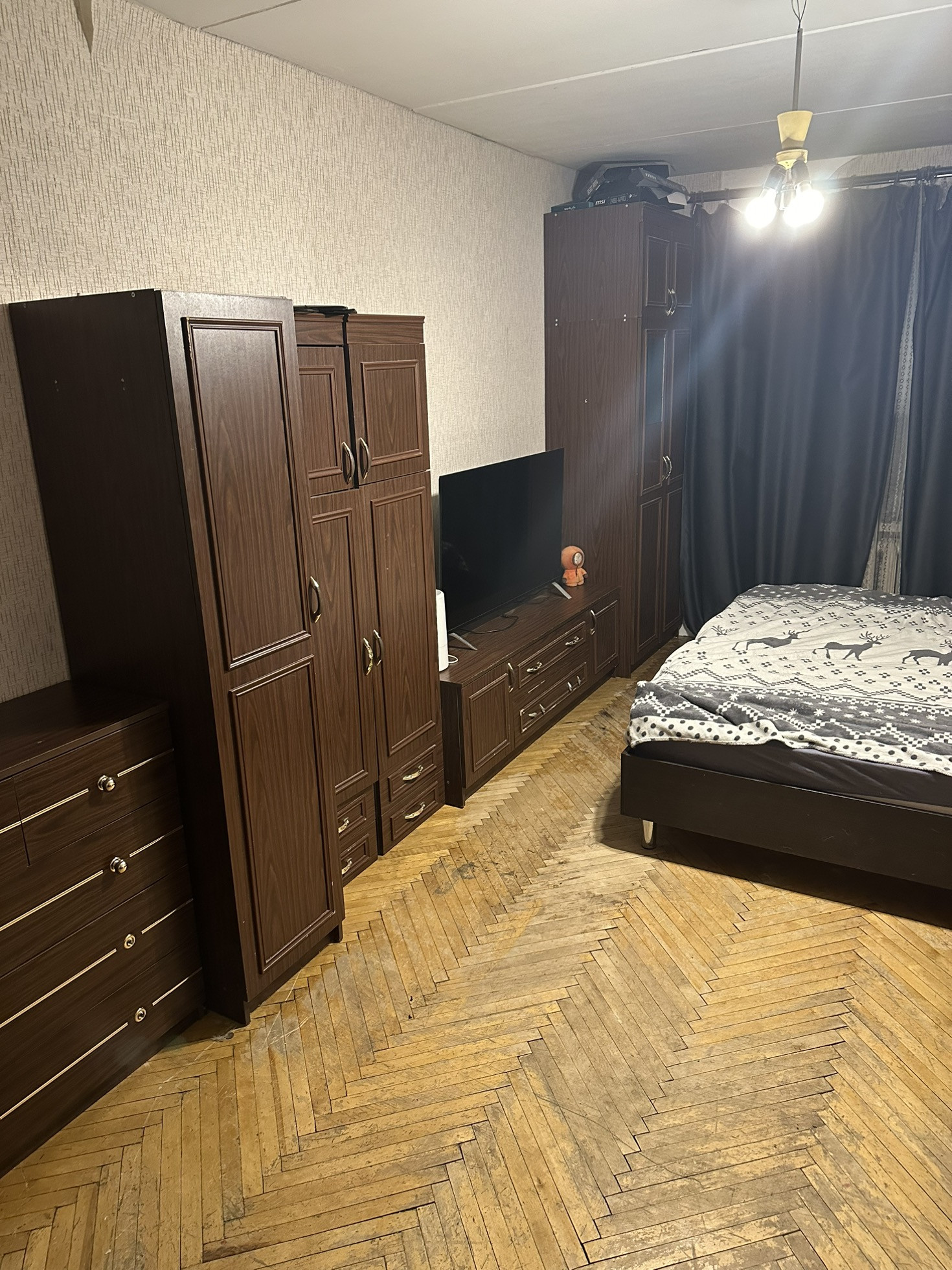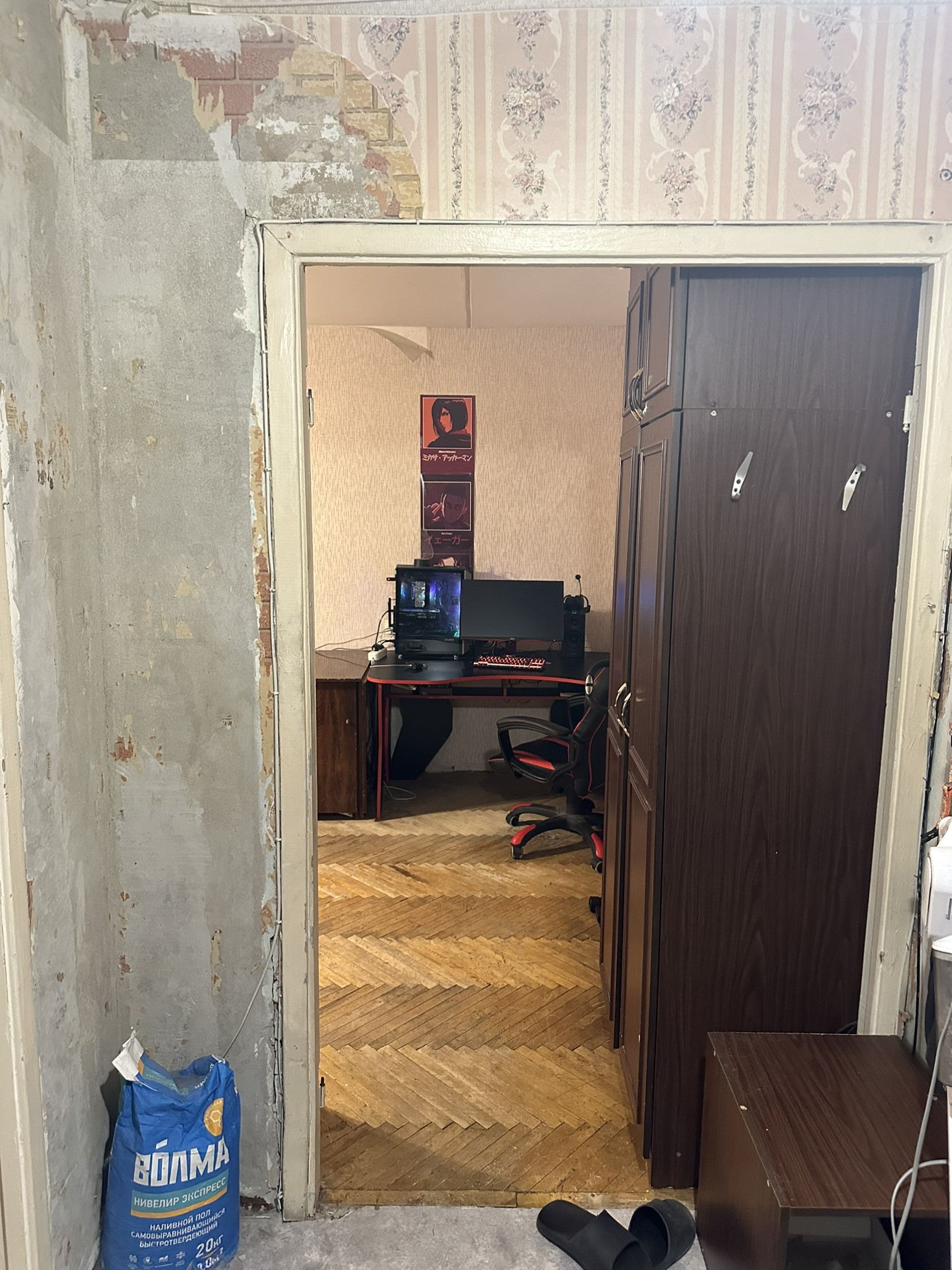 Комнаты раздельные (на 18,8 и 12,1 кв/м). Квартира под ремонт. Начинал ремонт с кухни, но потом приостановил в связи с покупкой нового имущества.
