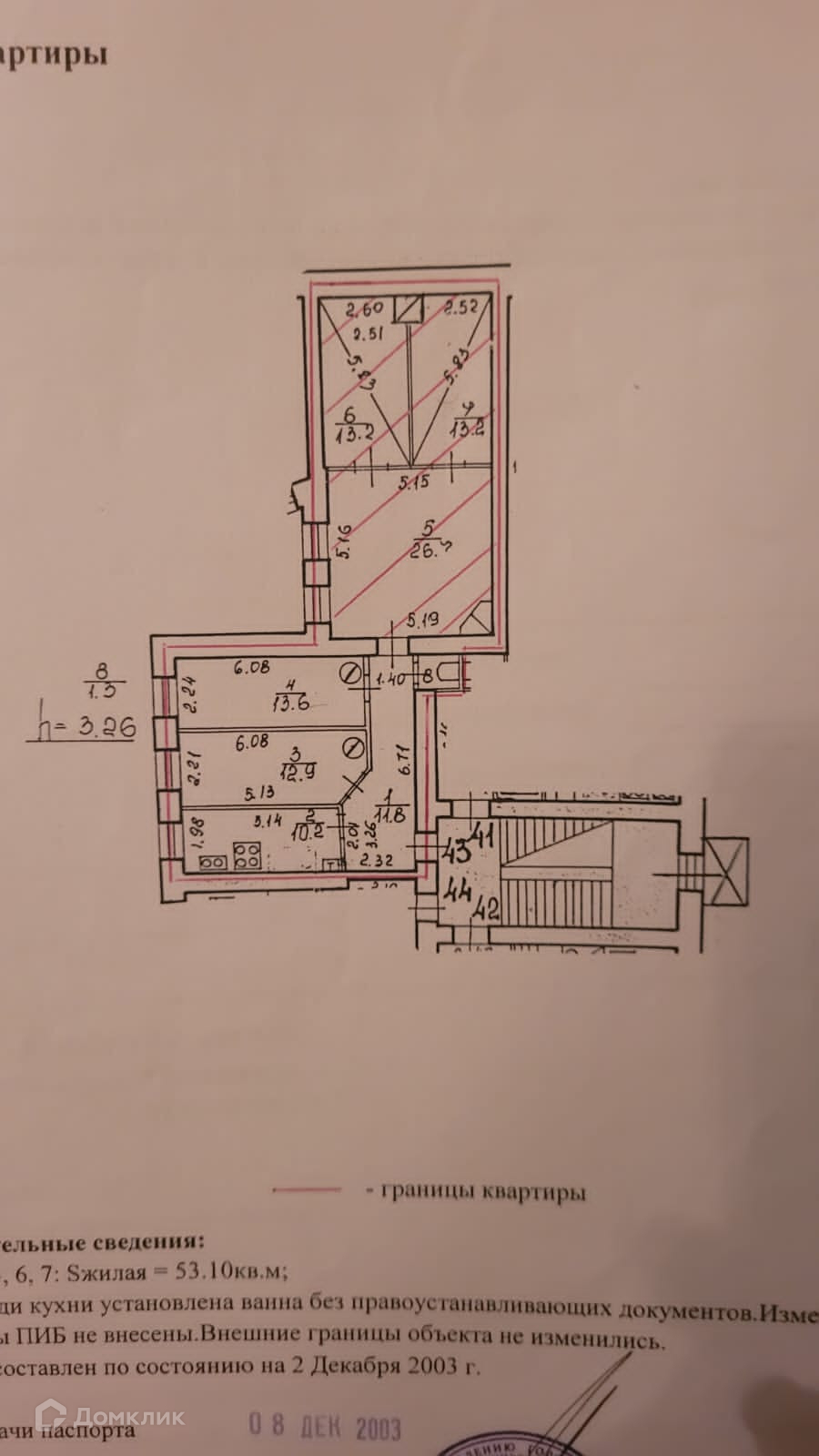 Высота потолков 3.26 м