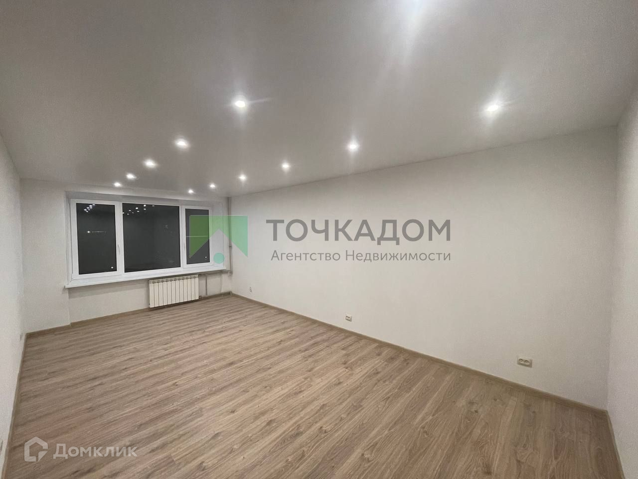 Просторная светлая комната 21.4 метра с возможностью зонирования (три зоны освещения, три пары розеток на противоположных стенах), ширина окон в комнате 270 см.