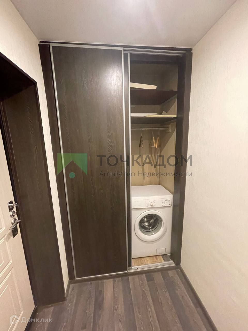 В коридоре установлен шкаф-купе со стиральной машиной.