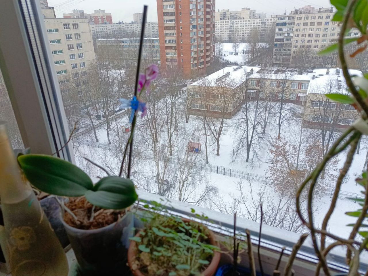 Вид из окна двор, улица