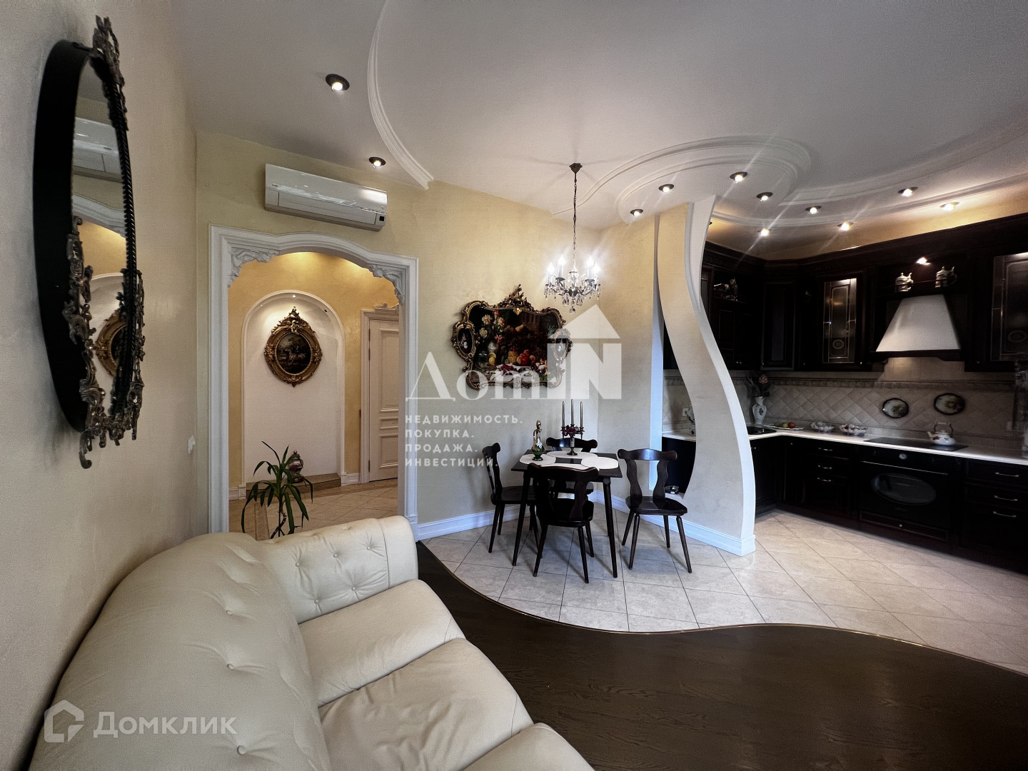 Просторная кухня-гостинная , большая комната, совмещенный санузел, арка в коридоре (можно сделать шкаф).