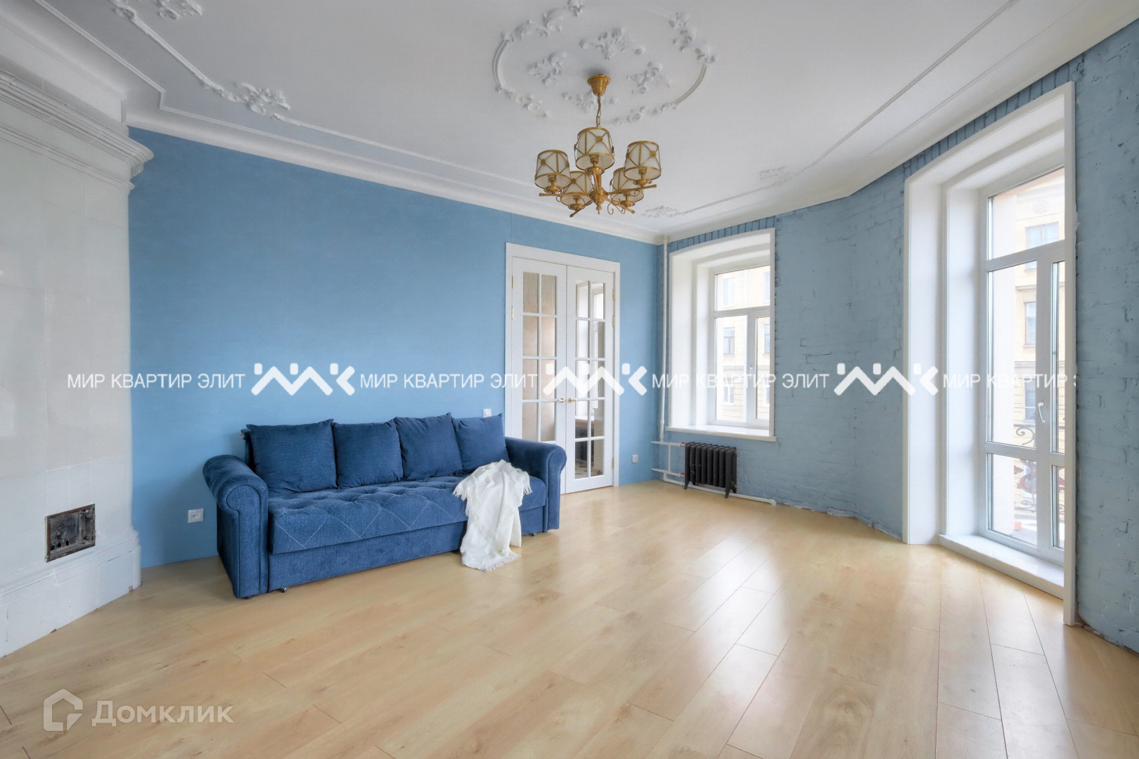Квартира с фишкой.  Полукруглый балкон с панорамными дверьми и камин (к сожалению не работает).  Потолки 3,2 м. в сочетании множеством окон создают светлое  атмосферное пространство. Частично выполнен ремонт. Цветовая гамма в стиле Смольного собора. Нежно голубые стены, белые высокие двери, оконные рамы с полукруглыми штапиками, чугунные ретро радиаторы, создают атмосферу старинного интерьера и дух Санкт-Петербурга времен императрицы Елизаветы.