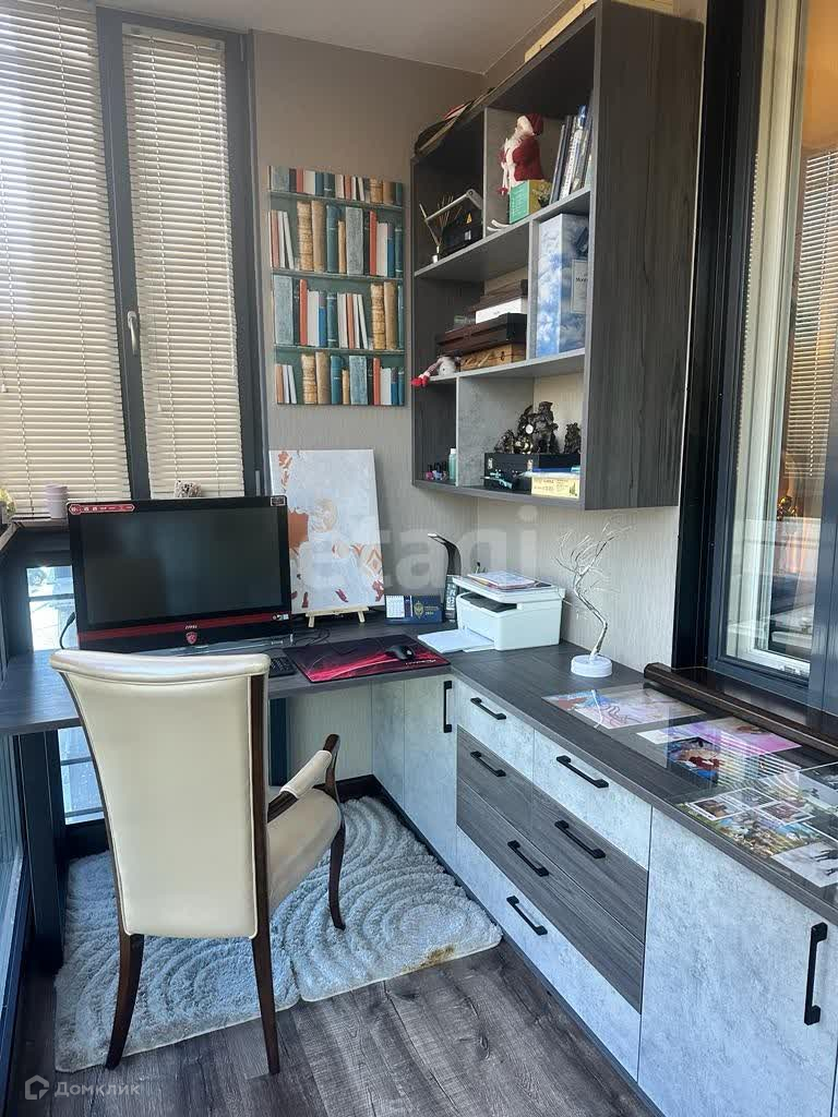 Балкон полностью оборудован под рабочий кабинет и фактически является частью жилой площади.