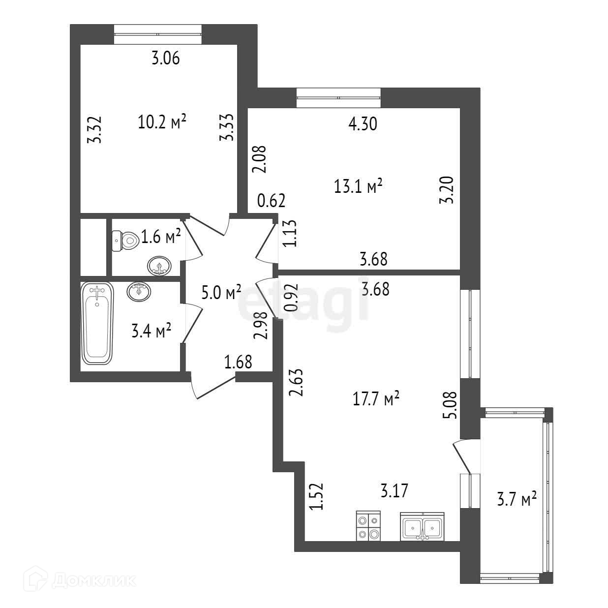 Общая площадь 51.14 м2