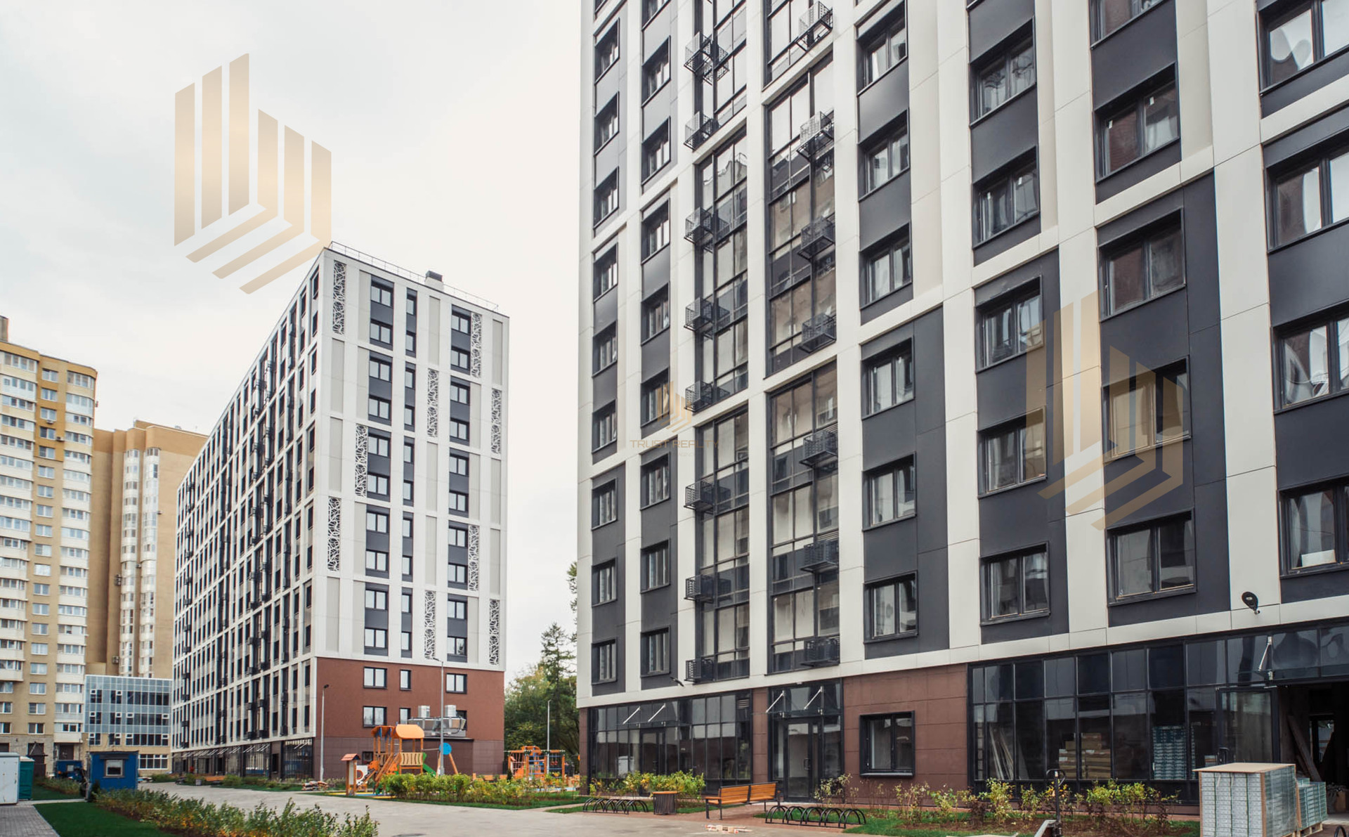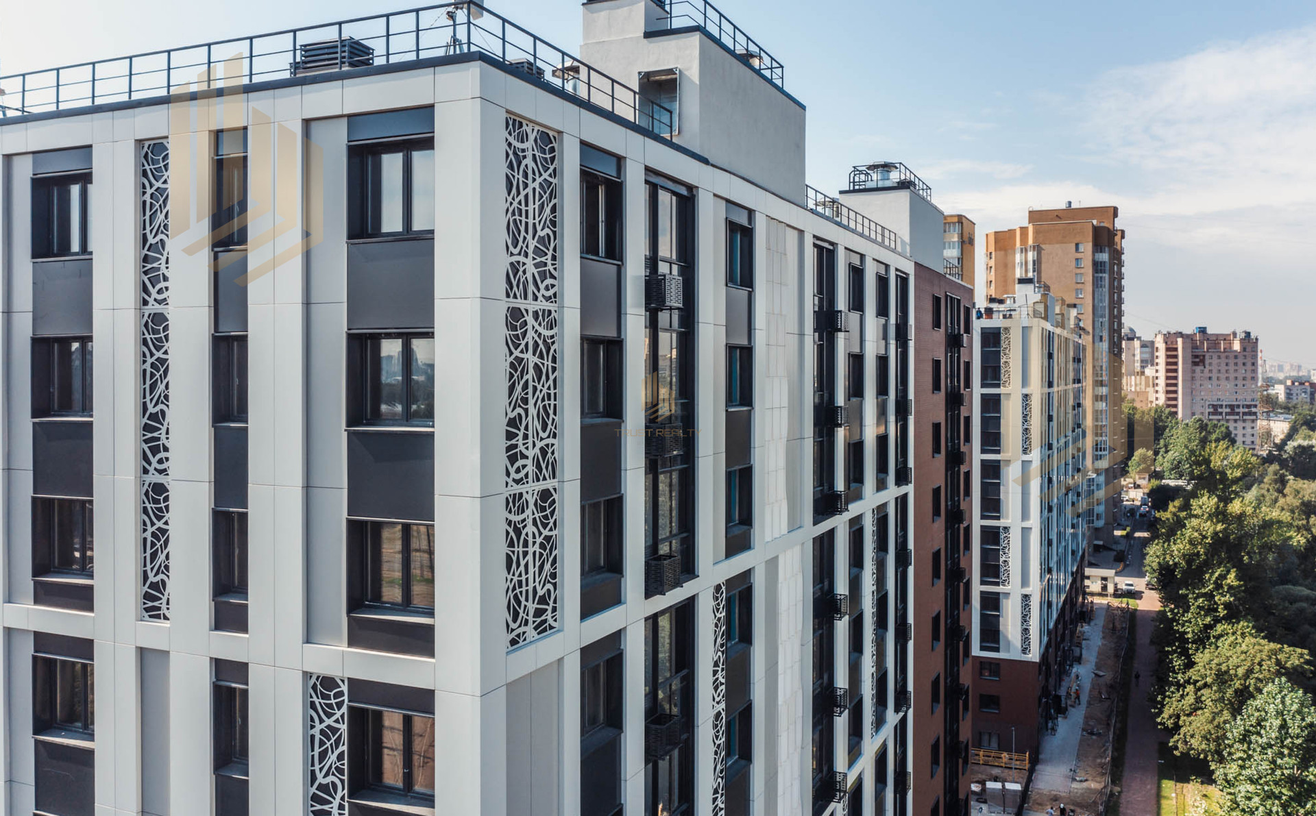 На территории жилого комплекса и в холлах ведется видеонаблюдение. На первых этажах расположены коммерческие помещения, а также комнаты для хранения колясок и велосипедов. В состав комплекса входит детский сад. На придомовой территории благоустроены места для отдыха, оборудованы детские и спортивные площадки. Для автовладельцев предусмотрен подземный паркинг.