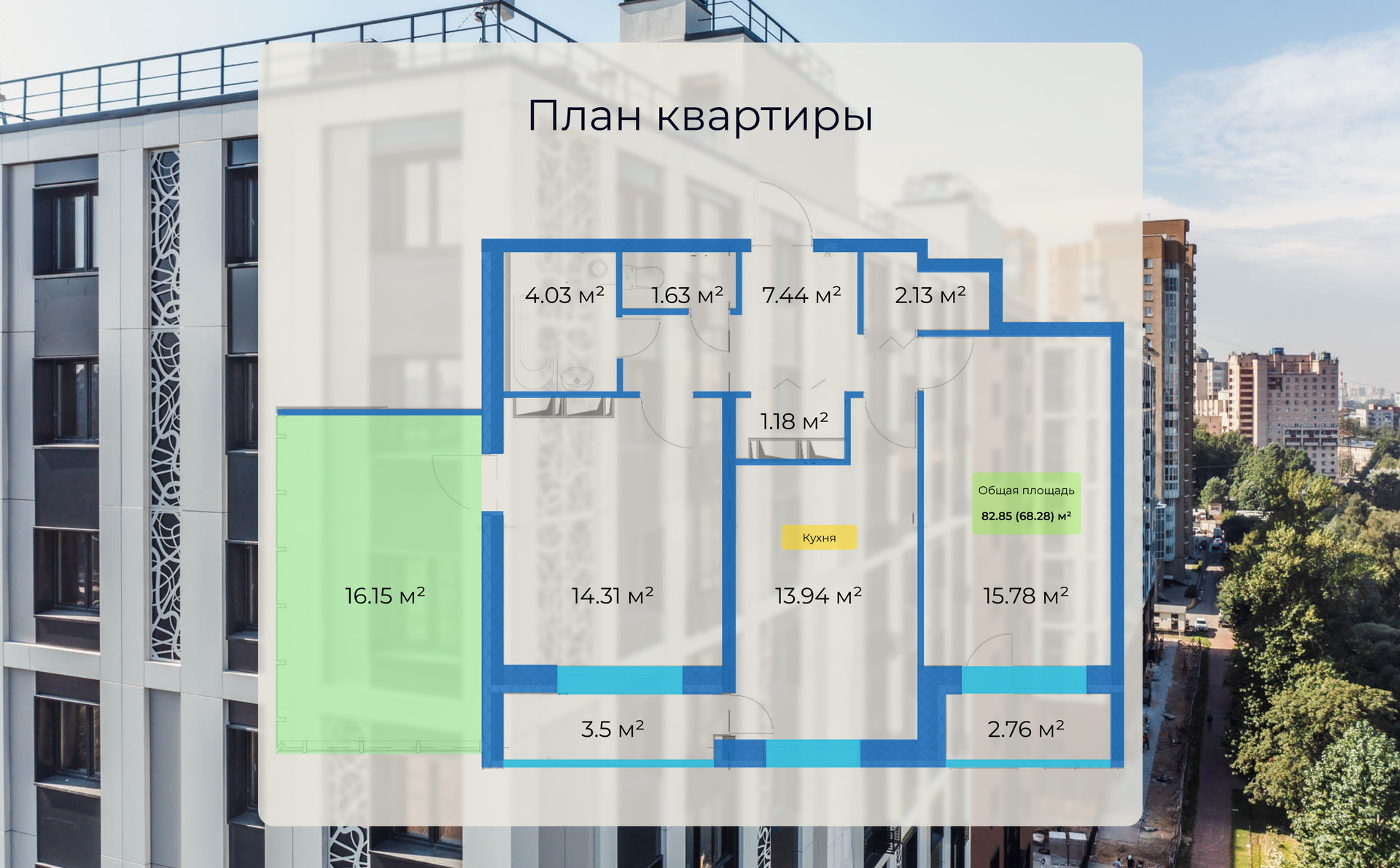 Общая площадь 82.85 м2