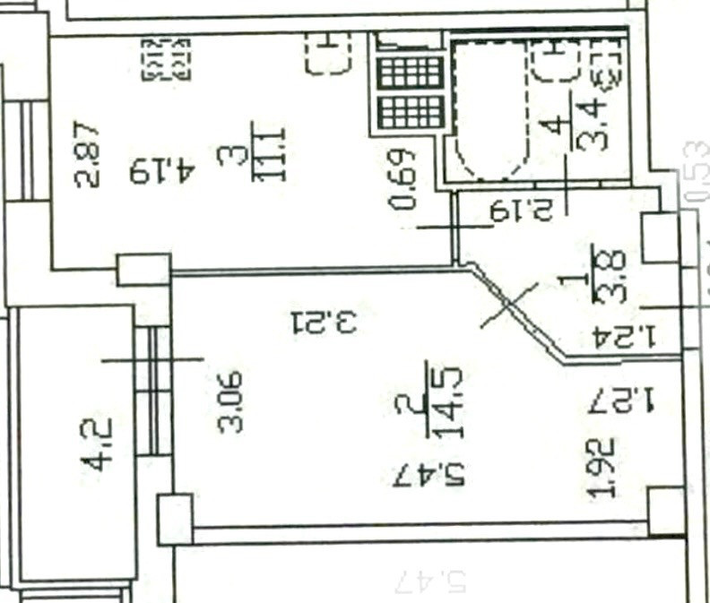 Кухня 11,1, комната 14,5 м2. Совмещенный санузел.