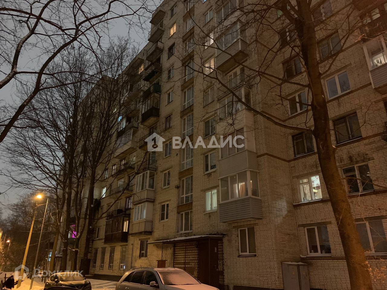 Квартира расположена в кирпичном доме 1966 года постройки. В доме установлен пассажирский лифт. Во дворе множество свободного пространства для размещения транспортного средства, так же есть детская площадка. Вокруг дома много деревьев.