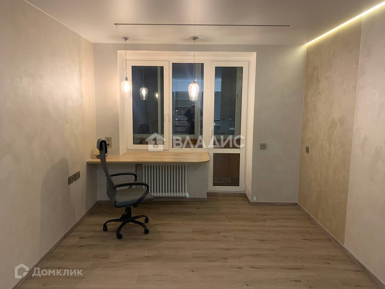 Комната 13,8 м² с выходом на застекленный балкон , так же обладает окрашенными декоративной краской стенами, паркетным полом с подогревом, а так же дизайнерским освещением по всему помещению на потолке из гипсокартона. В комнате расположен стильный рабочий стол и компьютерное кресло. Над столом проведено лампочное дополнительное освещение. Так же в комнате есть вместительный гардероб 4,2 м² оснащенный точечным освещением.
