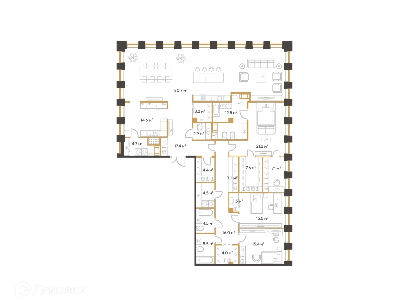 Площадь кухни 80.7 м2