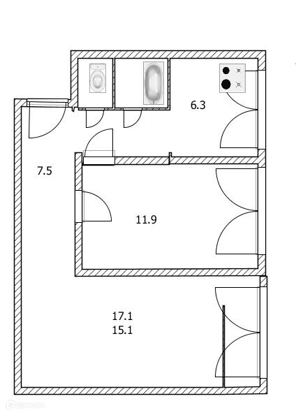 Общая площадь 44 м2