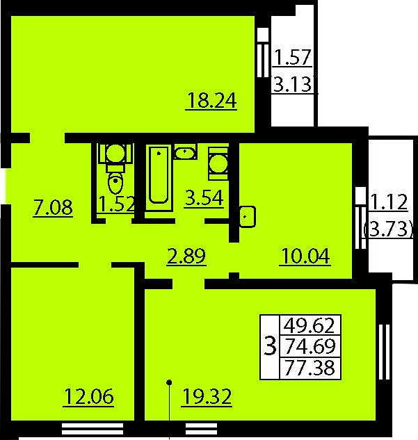 Общая площадь 77 м2
