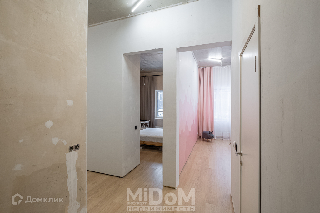 Не смотря на то, что ремонт доделан не до конца, его стадия дает возможность жить в ней и в то же время сделать его под себя. Высокие потолки позволят обыграть свет, сделать спортивный уголок для себя и для детей. И в этом плане очень хорошо, что потолки не доделаны до конца, вы можете поставить усиления (закладные) там, где вам будет удобно, и завершить его. Площадь кухни 15,6 м² позволит сделать уютную, светлую кухню гостиную. Две светлые комнаты 13,65 м² и 13,28 м² имеют правильную прямоугольную форму. В одной из комнат есть ниша под гардероб.