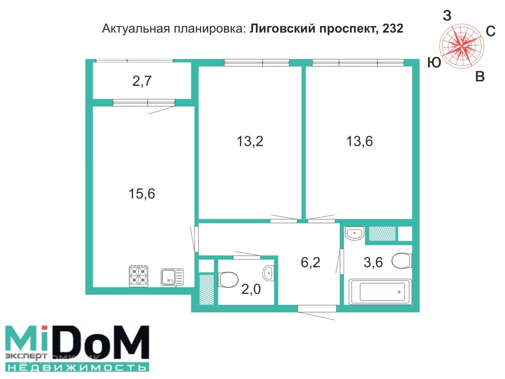 2-комнатная квартира, 55.84 м2, этаж 1 / 11, на продажу в Санкт-Петербурге, Лиговский проспект, 232