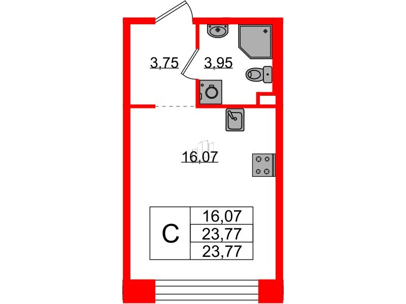 Общая площадь 23.77 м2