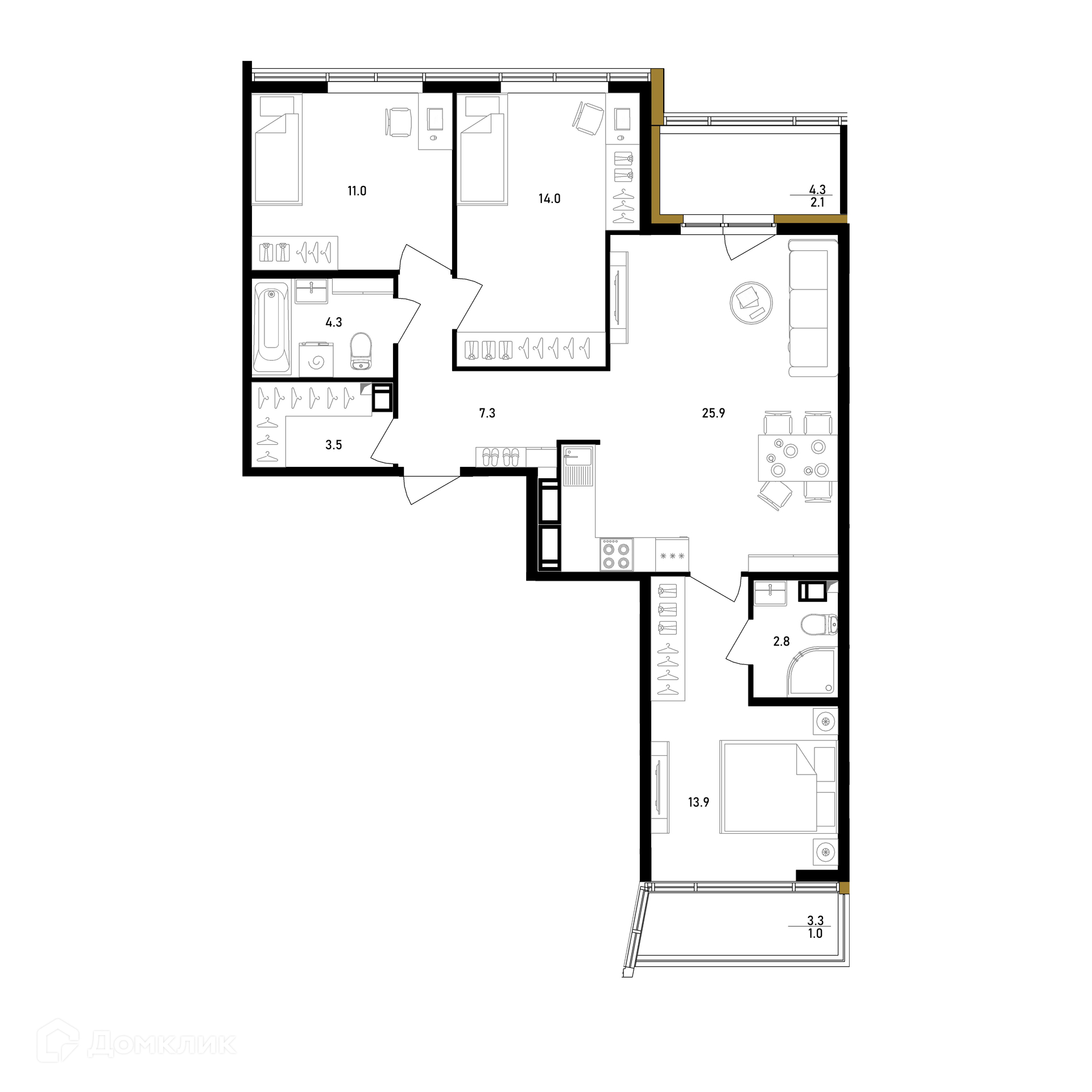 Общая площадь 85.8 м2