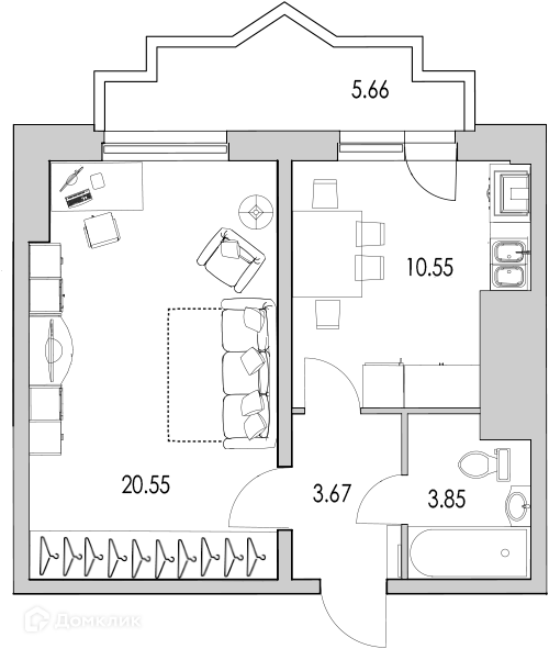 Жилая площадь 20.4 м2