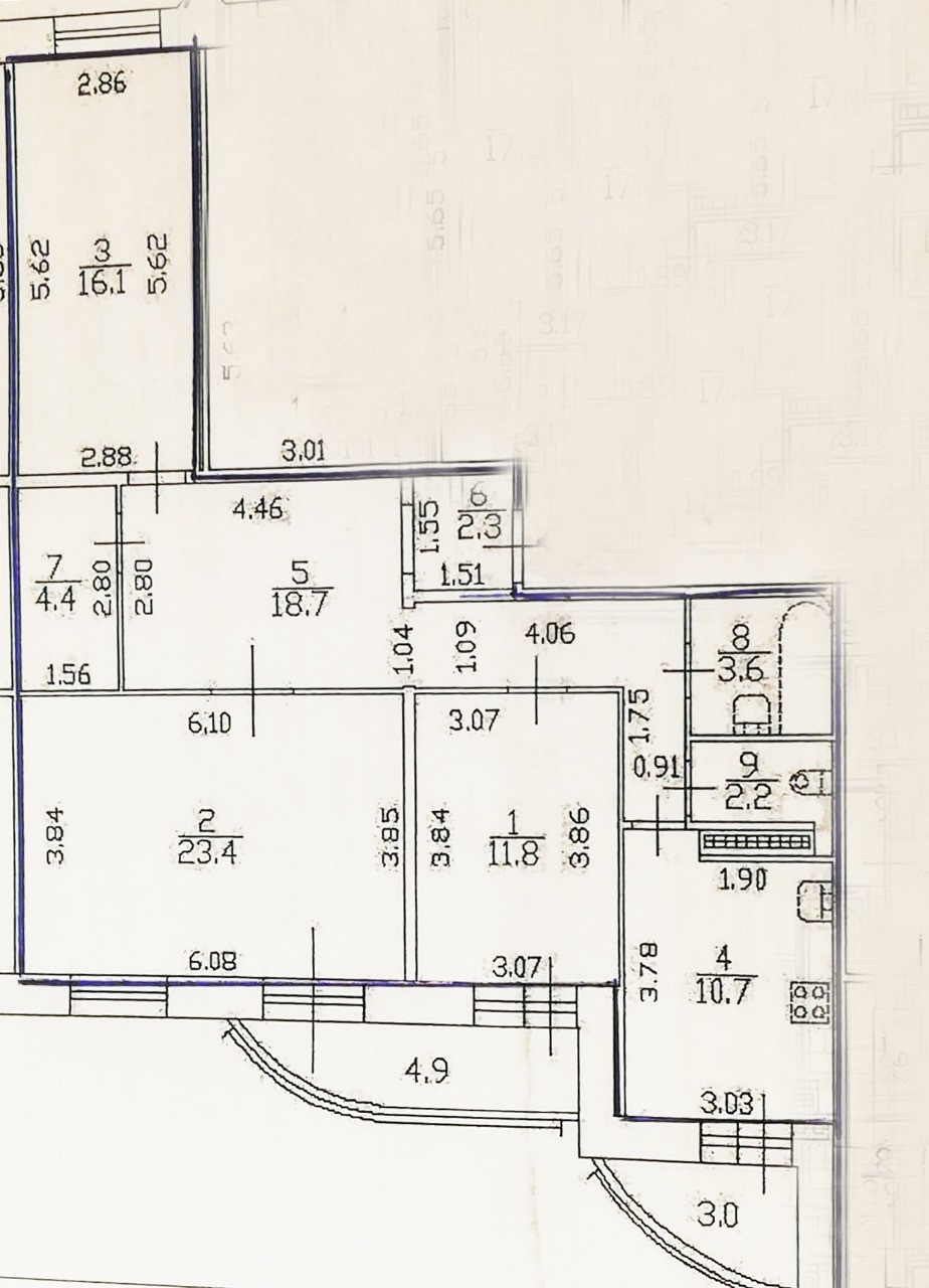 Жилая площадь 51.3 м2