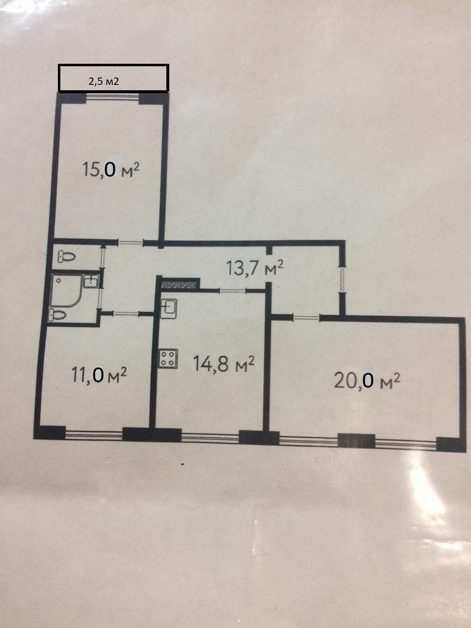 Комнаты: 15,0м2.+11.0м.2.+20,0м2.