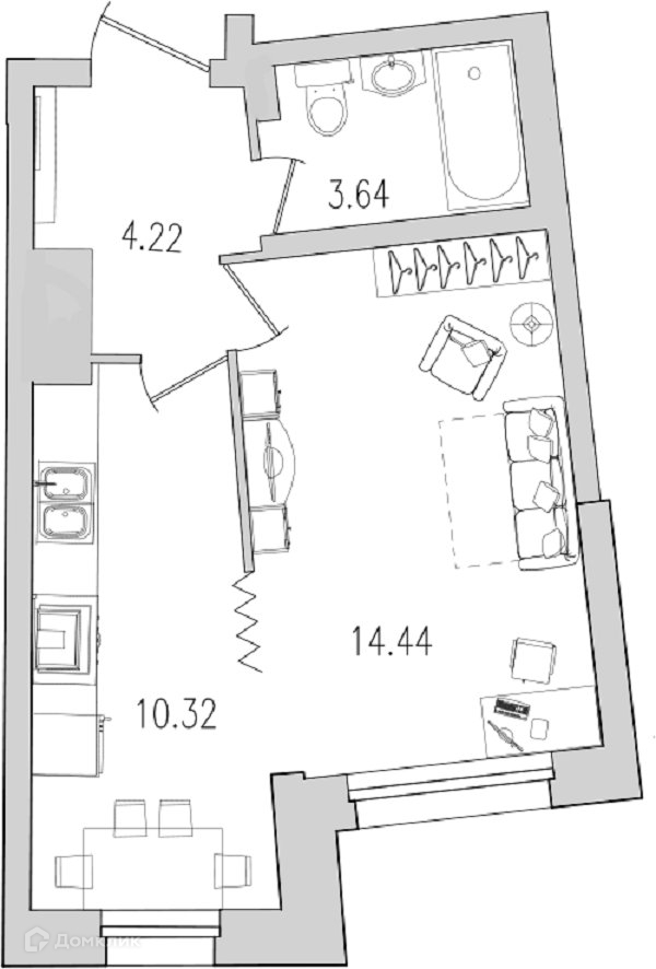 Площадь кухни 10.32 м2