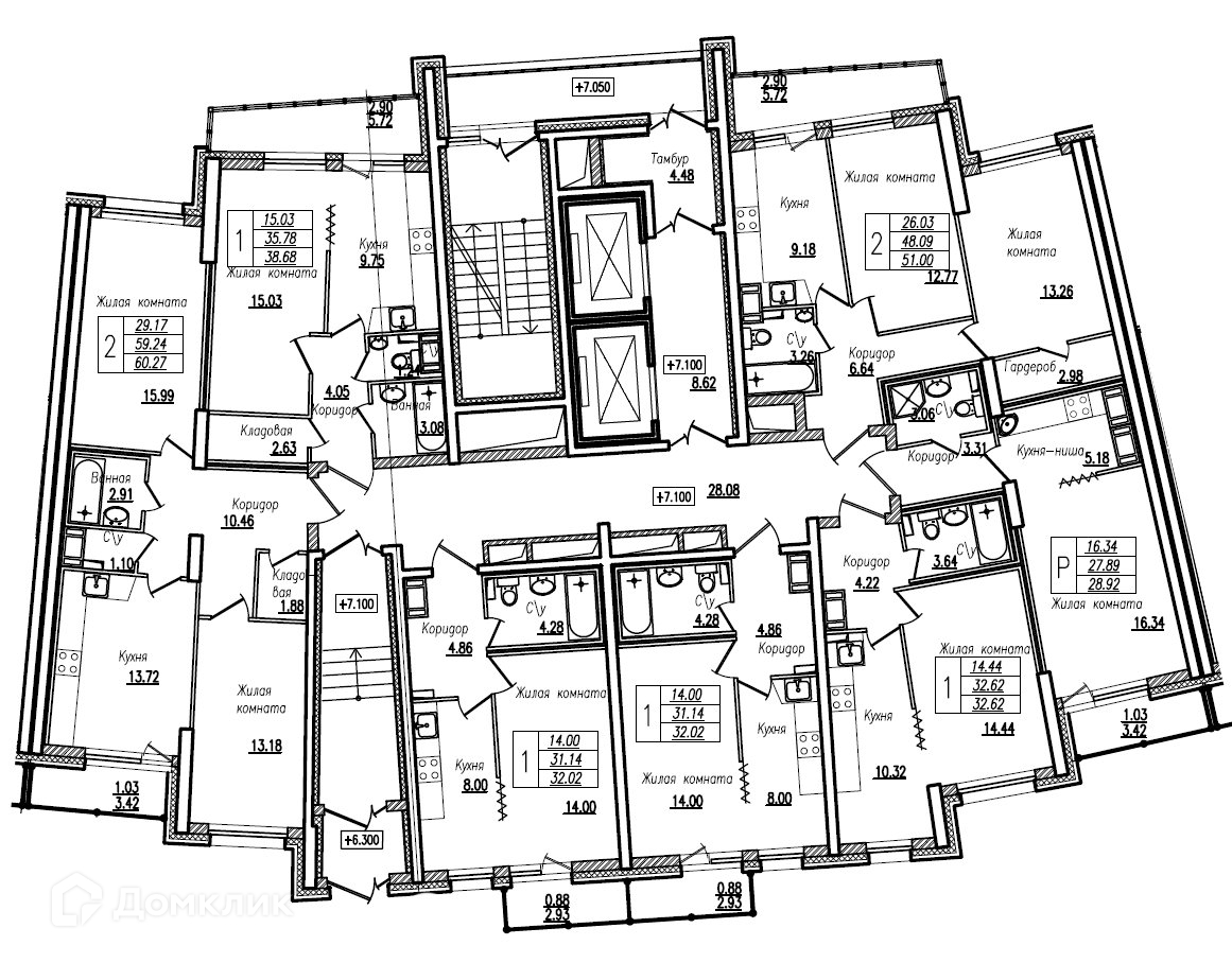 Общая площадь 32.62 м2