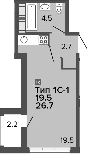 Общая площадь 26.7 м2