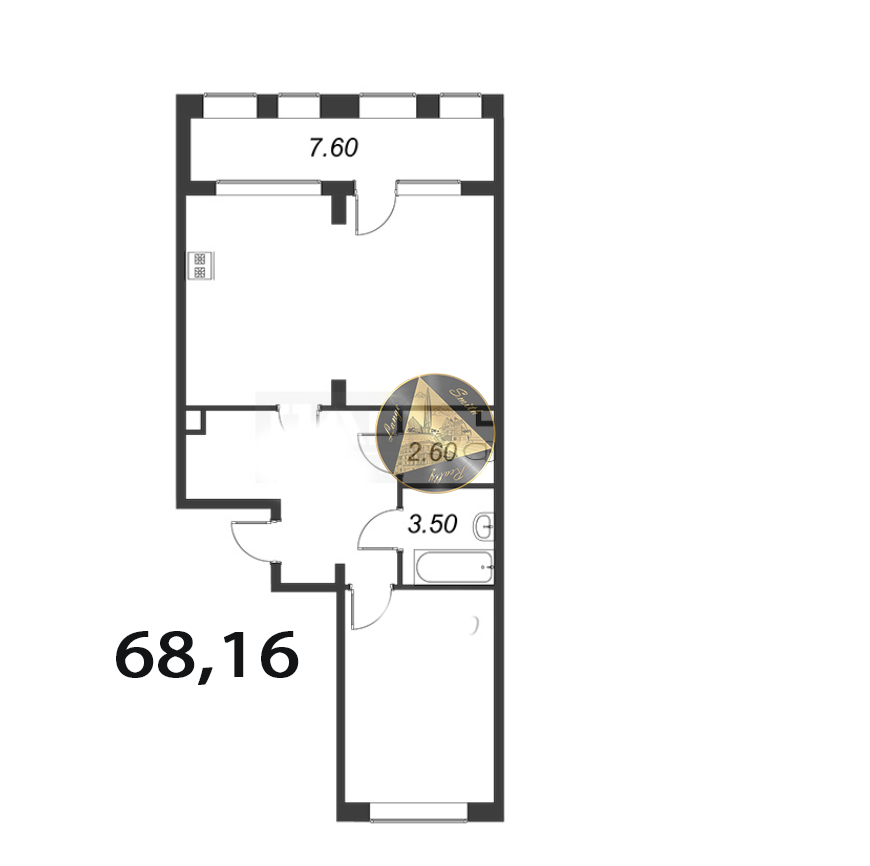 - Общая площадь квартиры 68,16 м2.