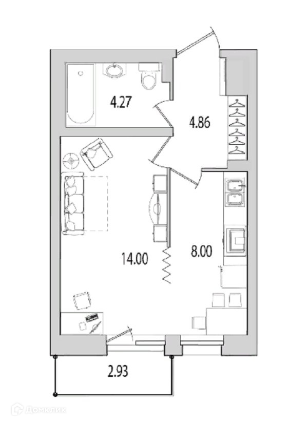 Общая площадь 34 м2