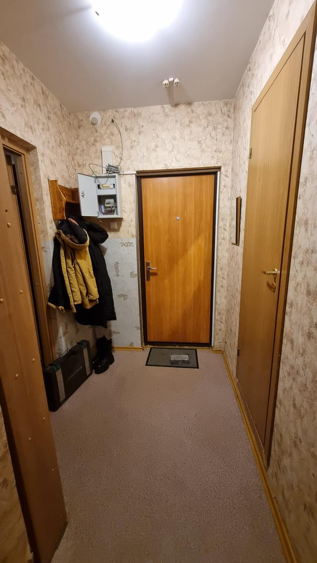 В санузле установлены счётчики горячей и холодной воды, в прихожей - централизованная пожарная сигнализация.