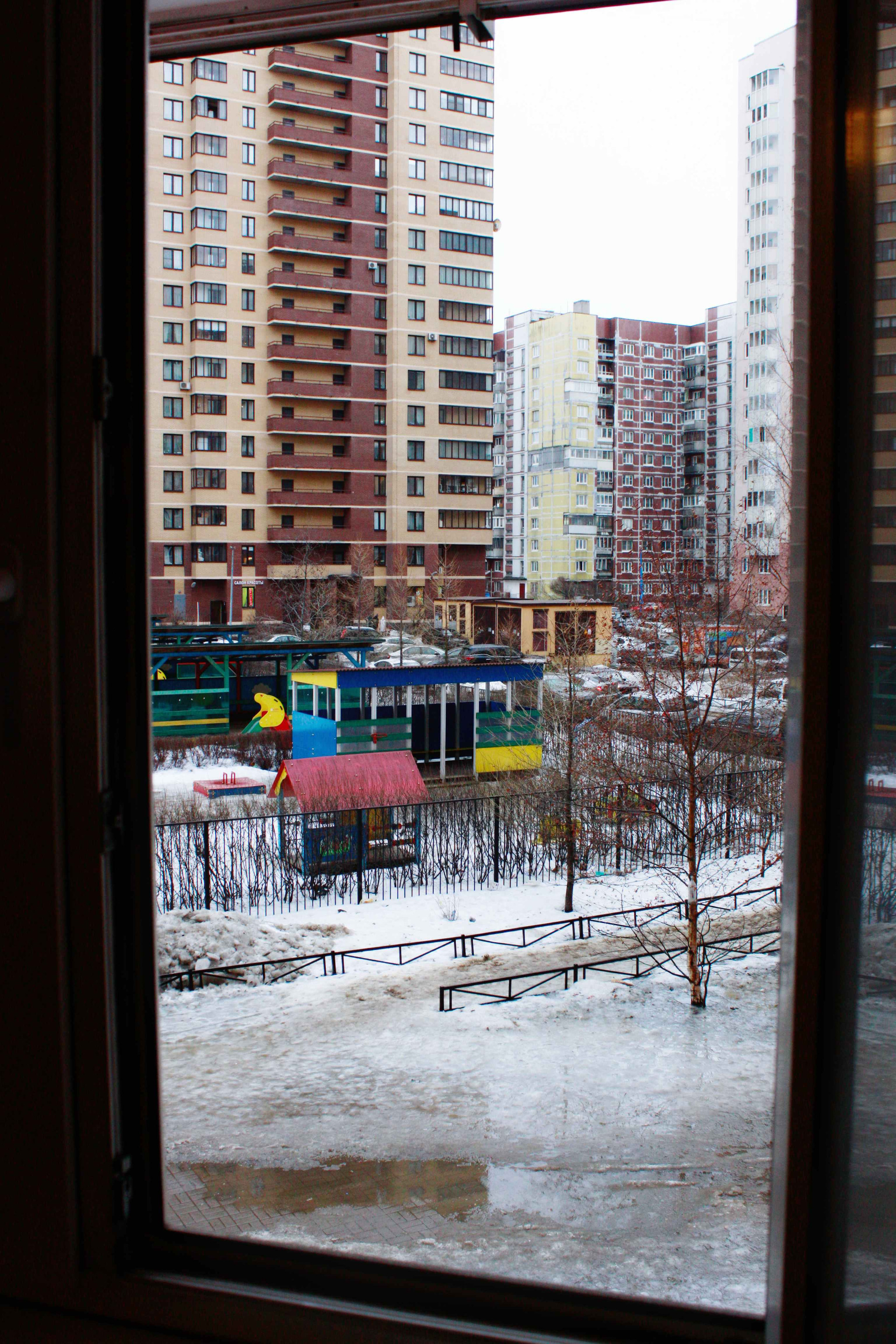Окна квартиры выходят в тихий и спокойный двор с детской площадкой.