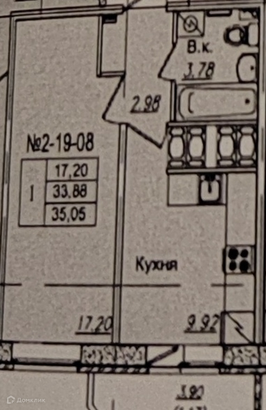 Общая площадь 33.3 м2