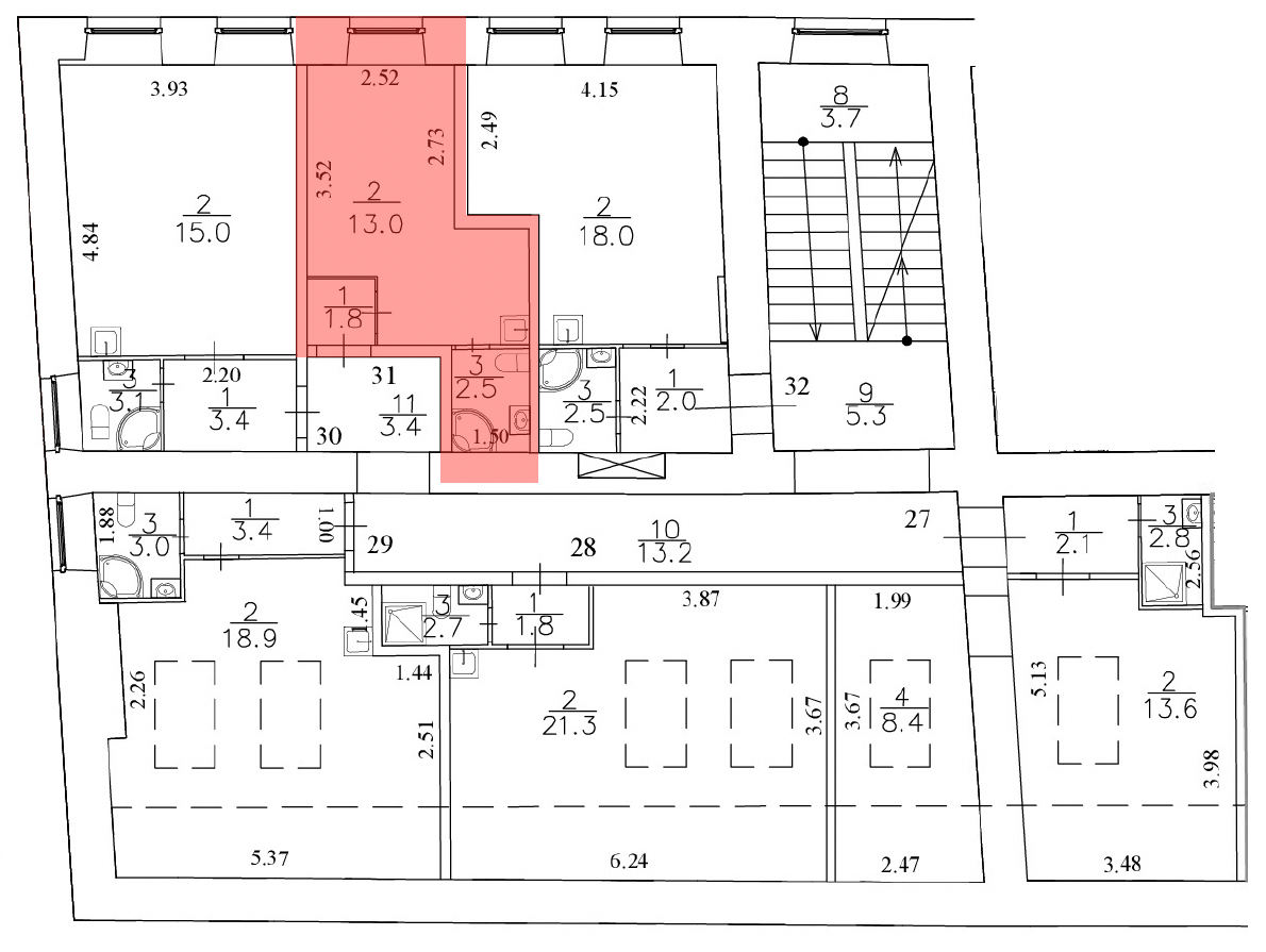 Общая площадь 17.3 м2