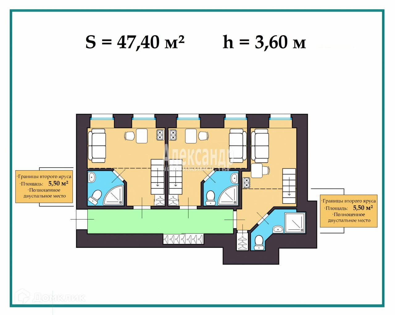 -   Площадь: 47,40 м² [общая по полу см. ПЛАН!]