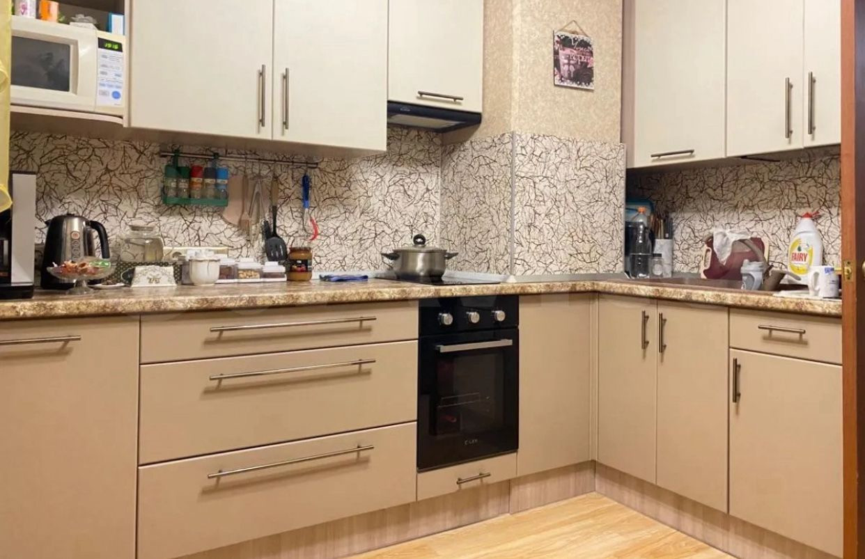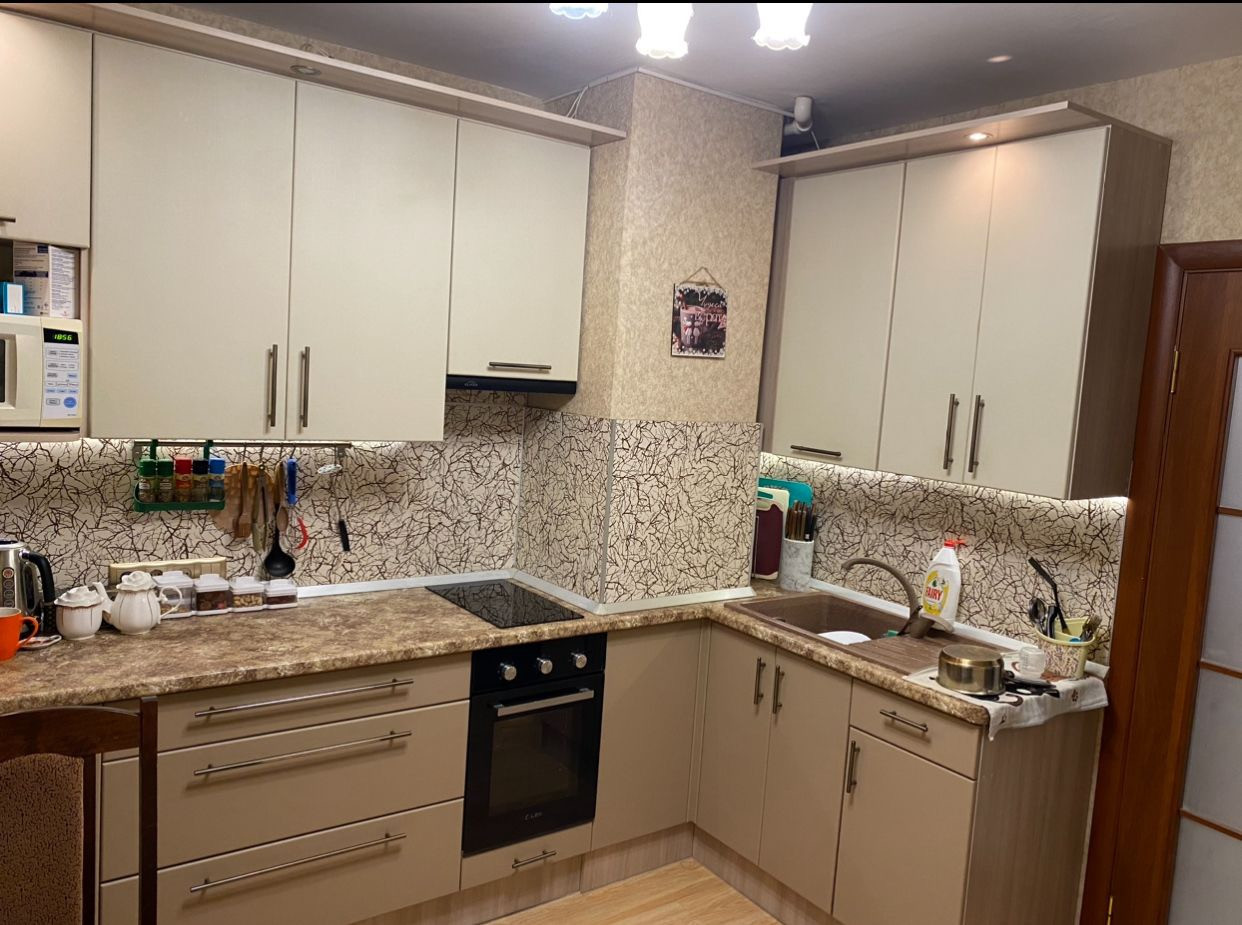 Все окна выходят на проспект. Кухня была подвержена реконструкции. Снесли кладовку, тем самым увеличили ее площадь.