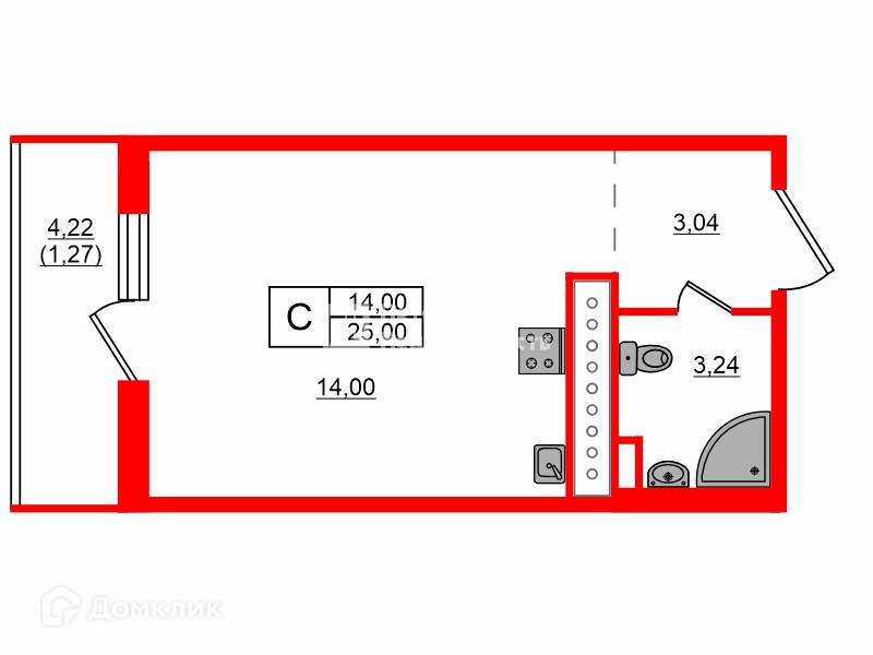 Общая площадь 25 м2