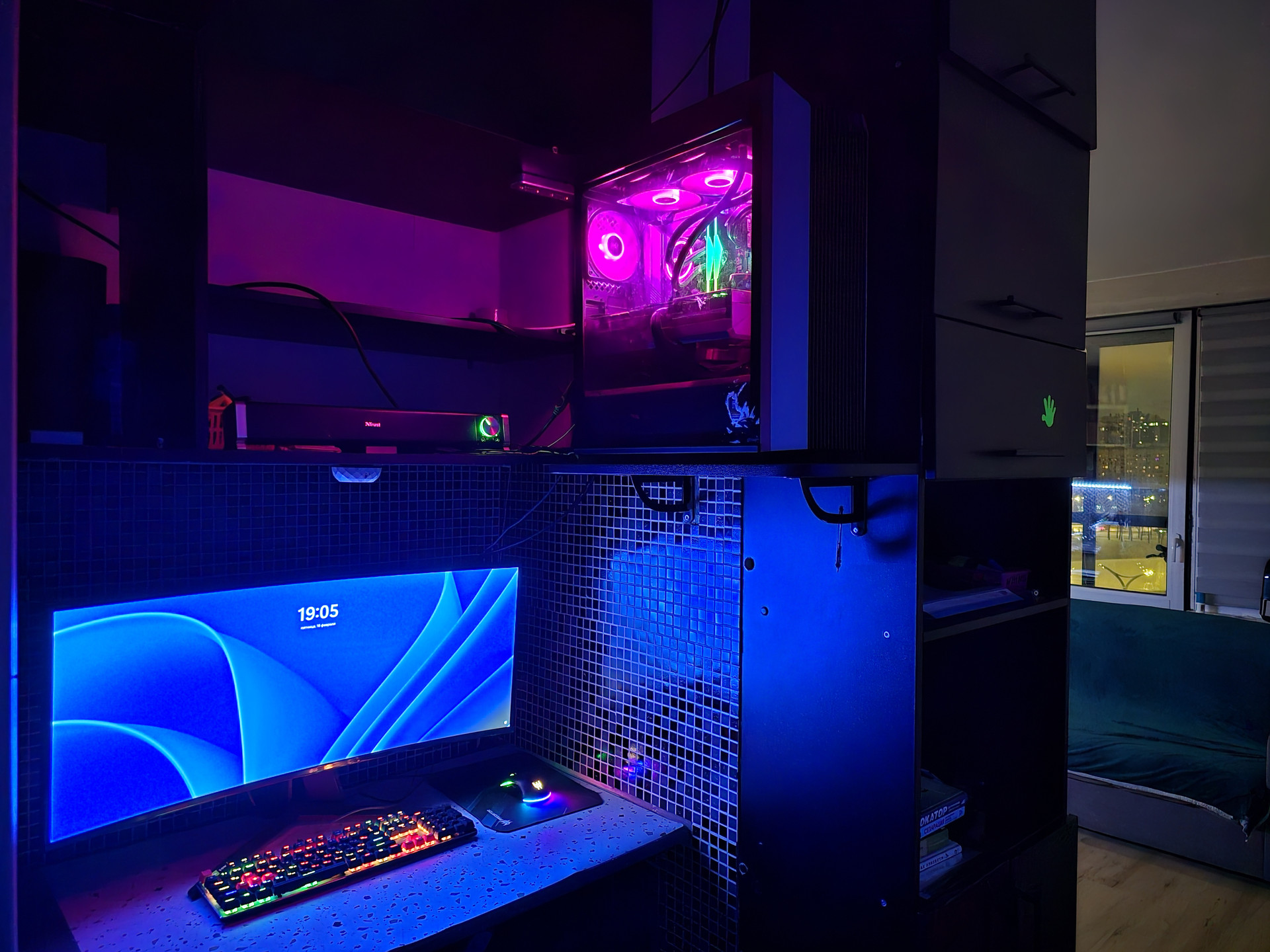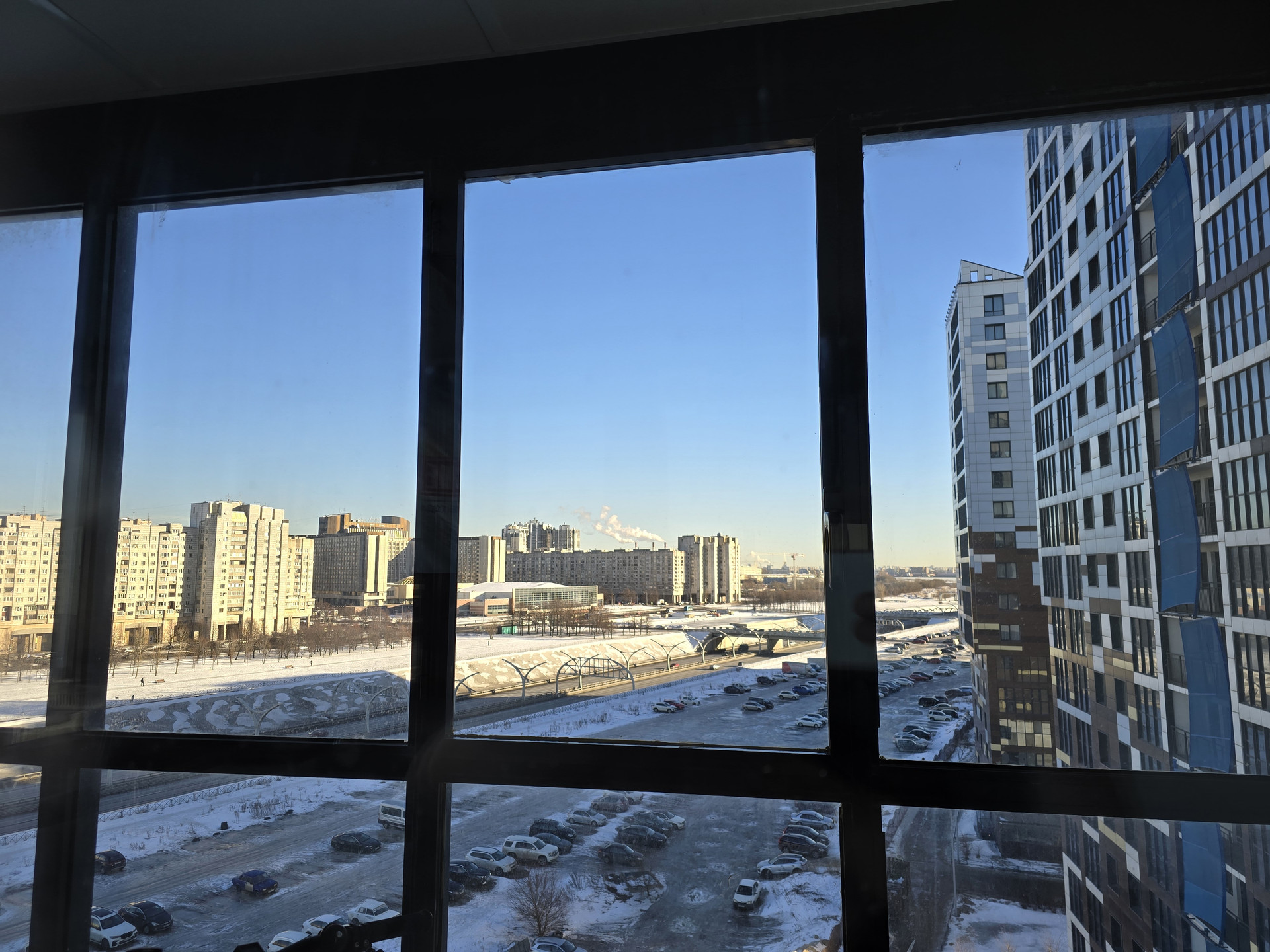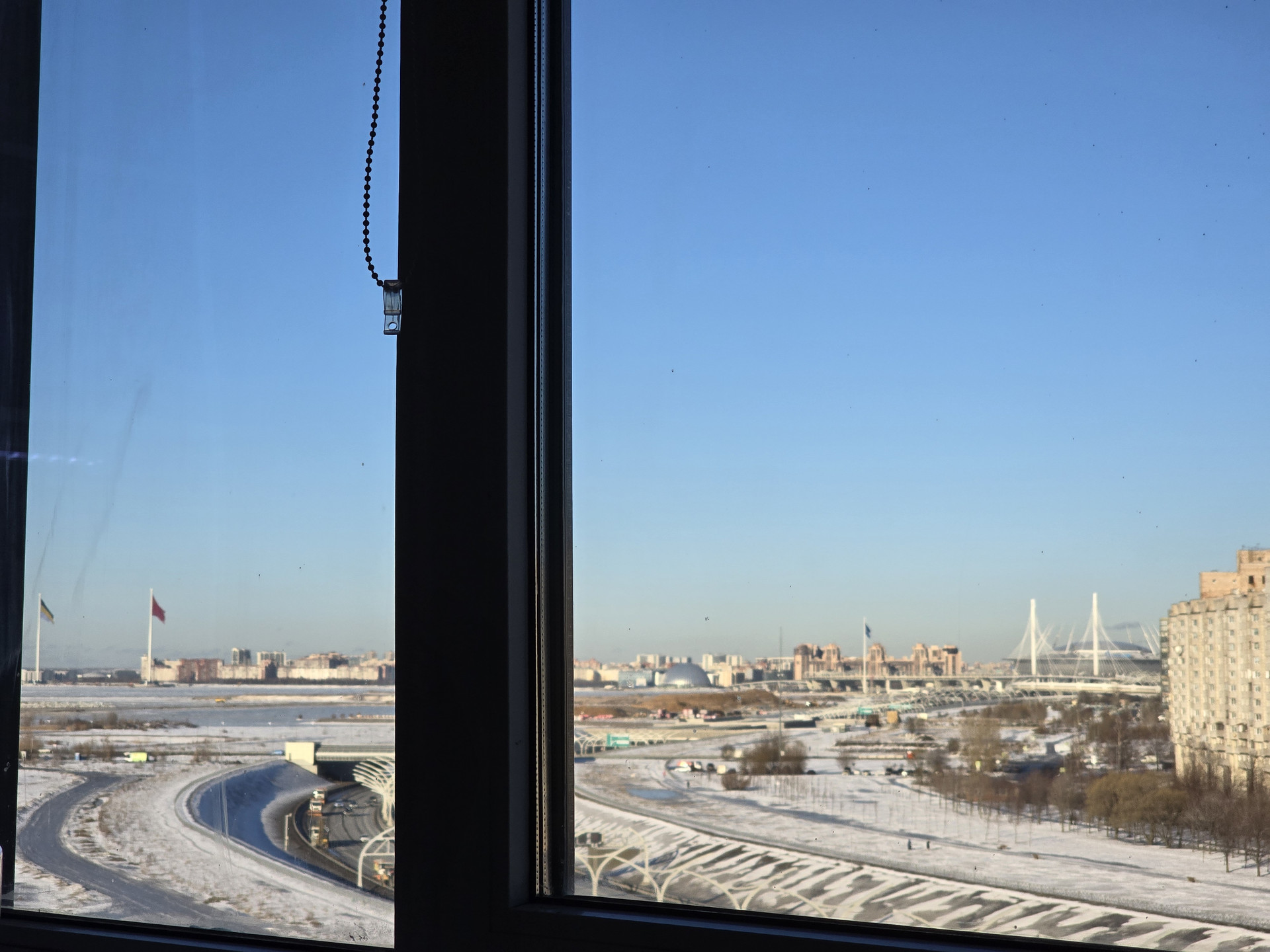 Уютная видовая студия с угловым расположением. Большие окна. Вид на Морскую Набережную, Газпром Арену. Окна выходят на южную и западную стороны.  Застеклённая в пол лоджия. Сделана премиальная шумоизоляция на одну главную стену граничащую с соседями, поэтому в квартире тихо и вечерами можно спокойно слушать музыку, общаться с гостями, смотреть фильмы.  Большая ванная.  Установлен кондиционер.