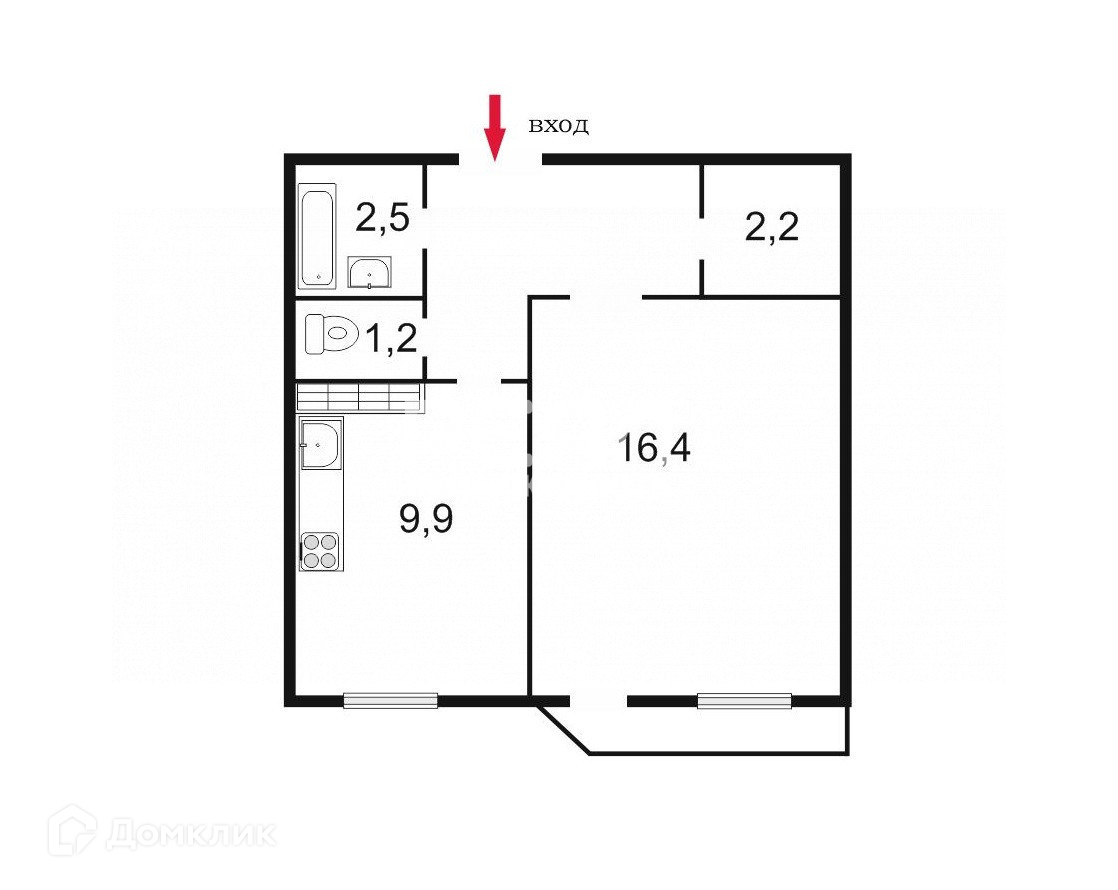 Жилая площадь 16.4 м2