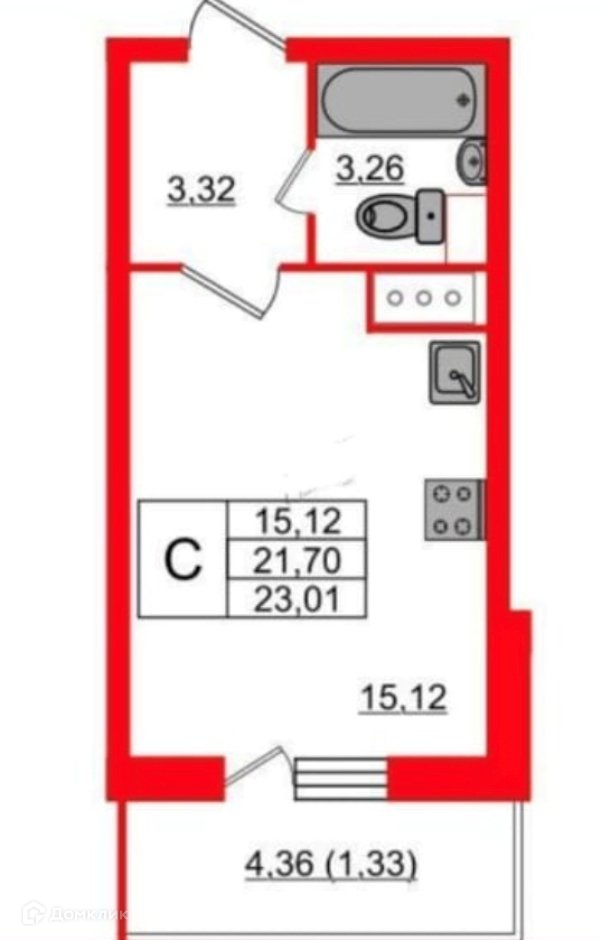 Общая площадь 21.5 м2