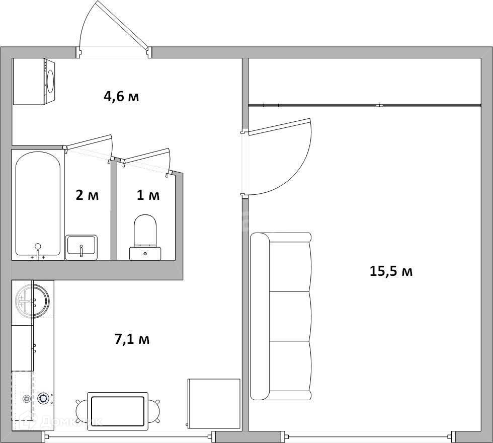 Жилая площадь 15.5 м2