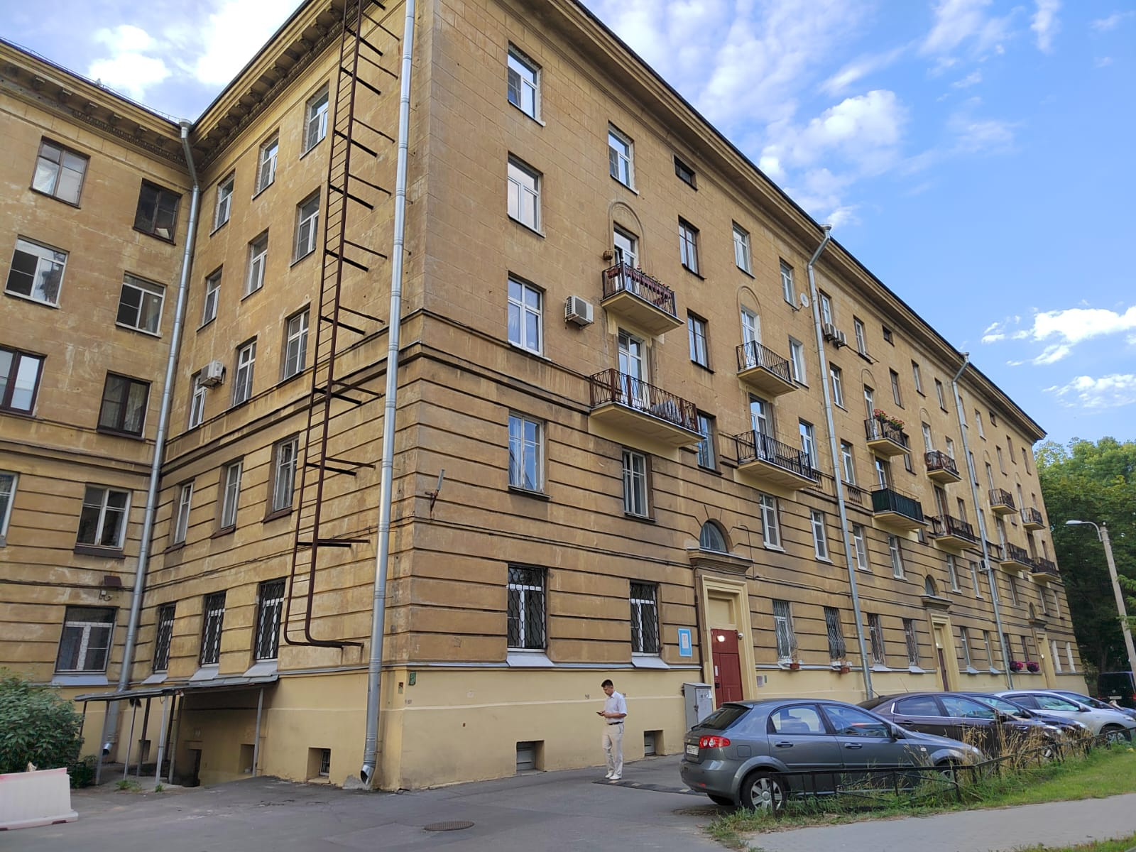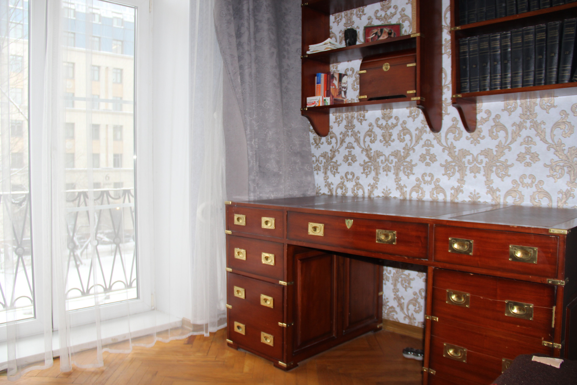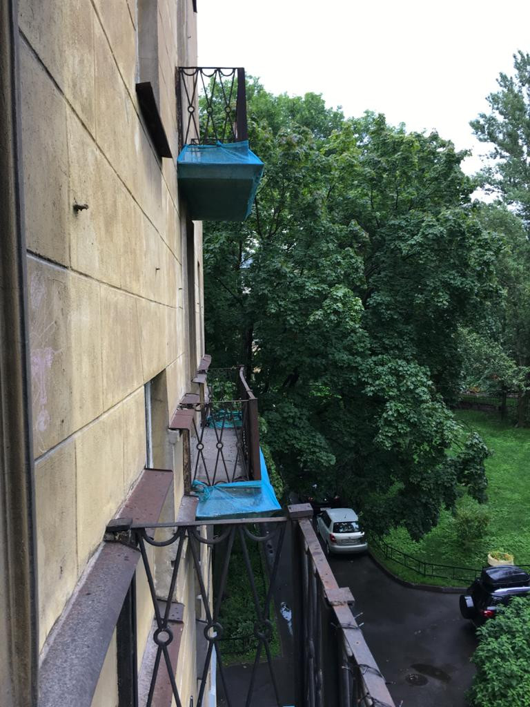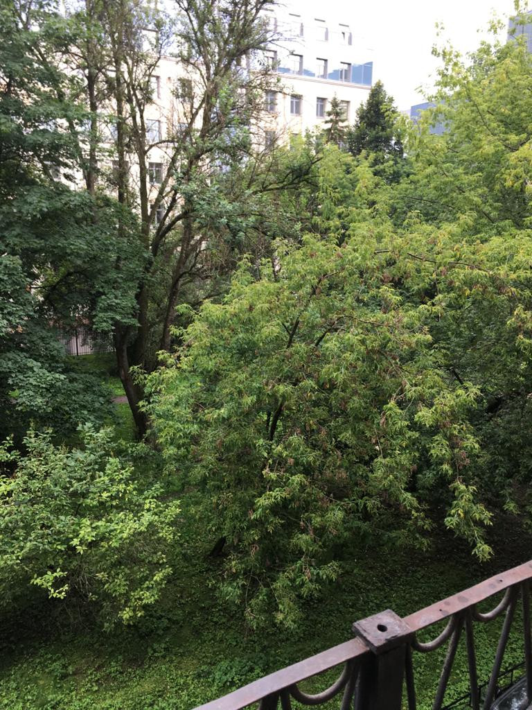 Окна выходят в зеленый двор.