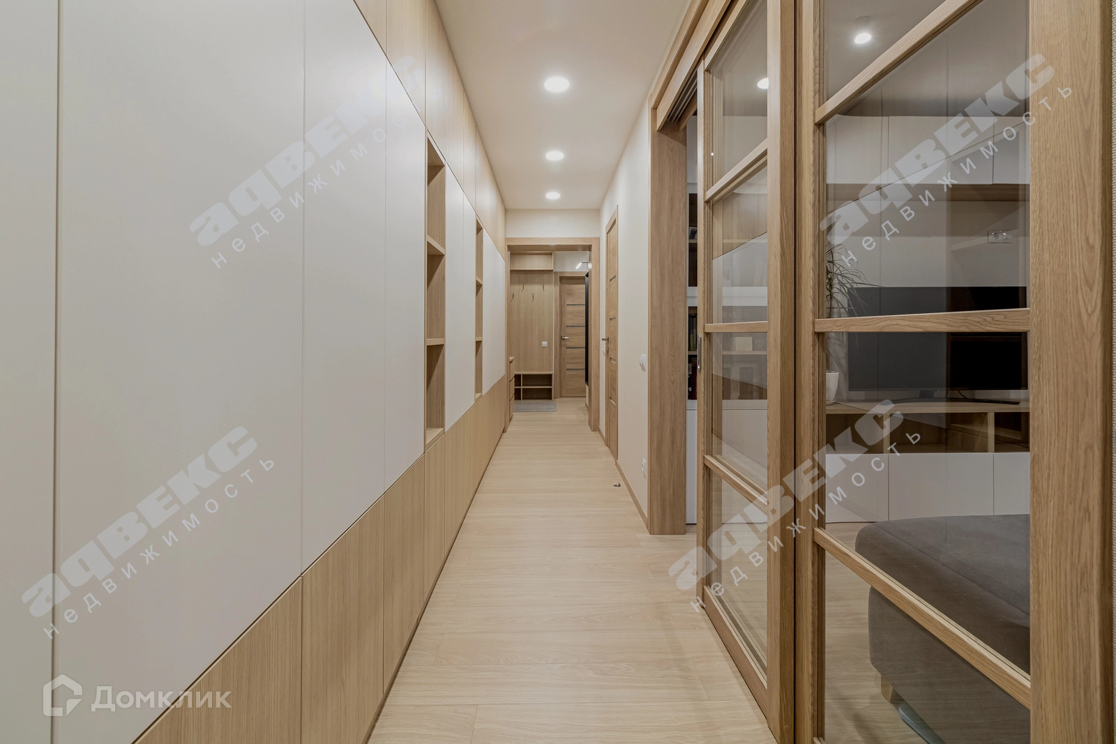 Огромное количество мест для хранения: просторная гардеробная, большой встроенный шкаф во всю длину коридора, застекленный балкон.