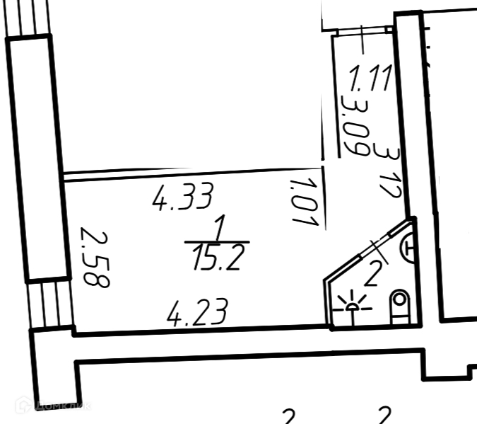 Общая площадь 17.1 м2