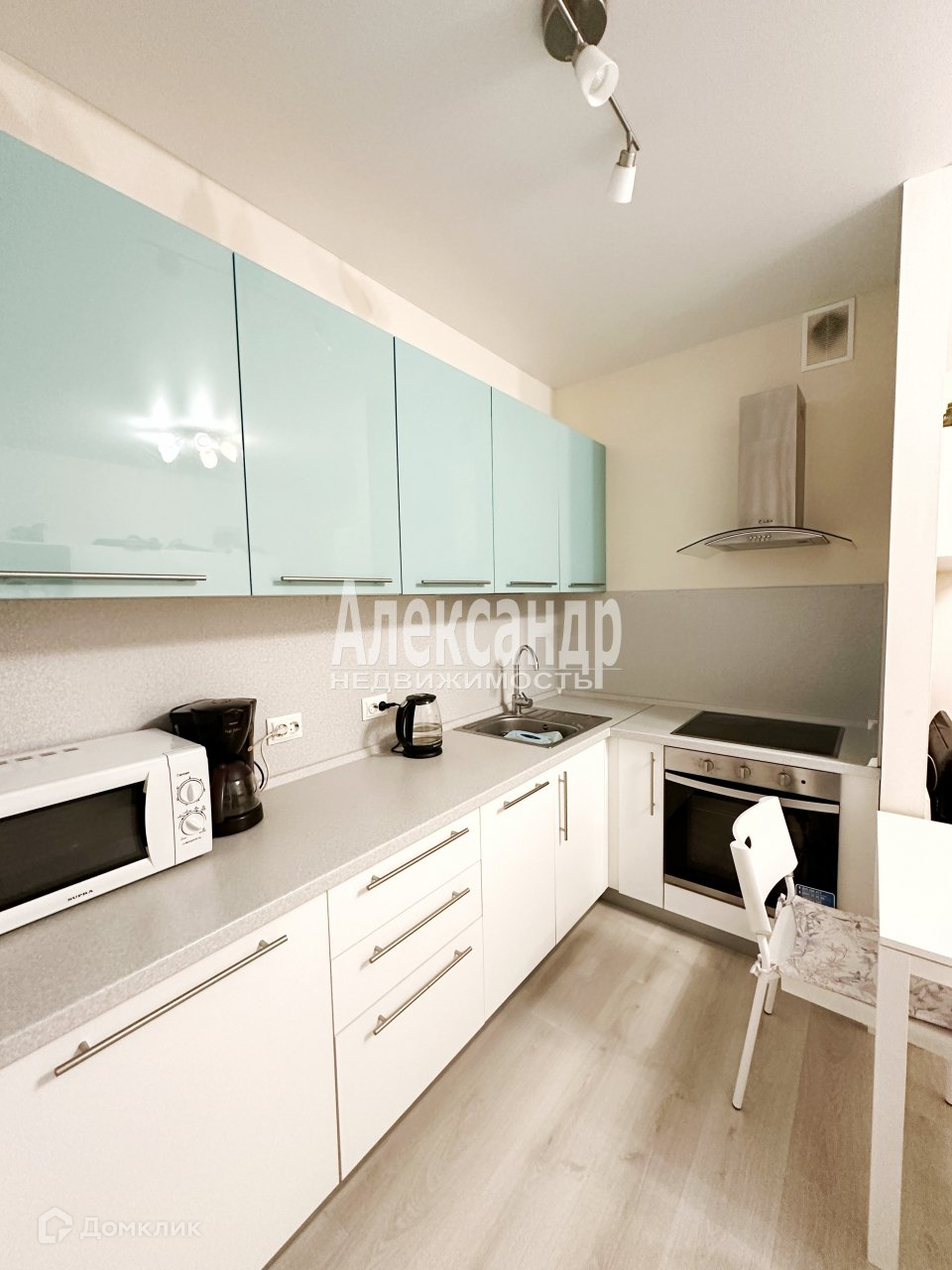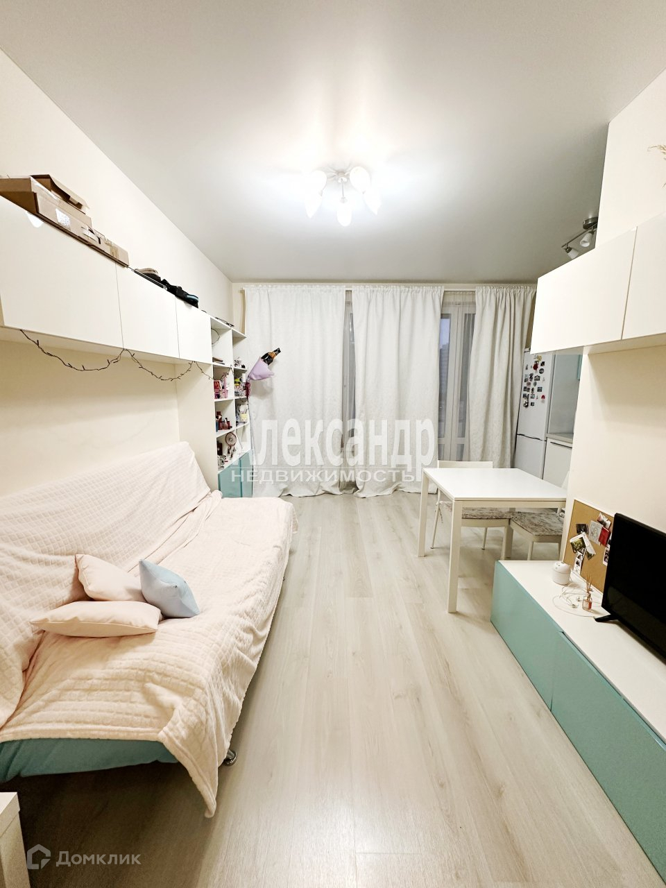 Студия у нас чистая ухоженная, можно заехать и жить, останется мебель и техника, кухонный гарнитур в полном сборе с техникой. Вместительный  встроенный шкаф купе в коридоре есть в нашей студии.