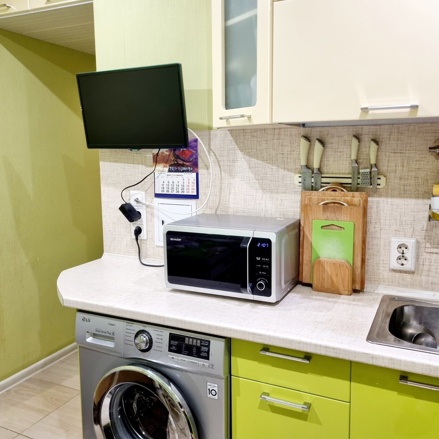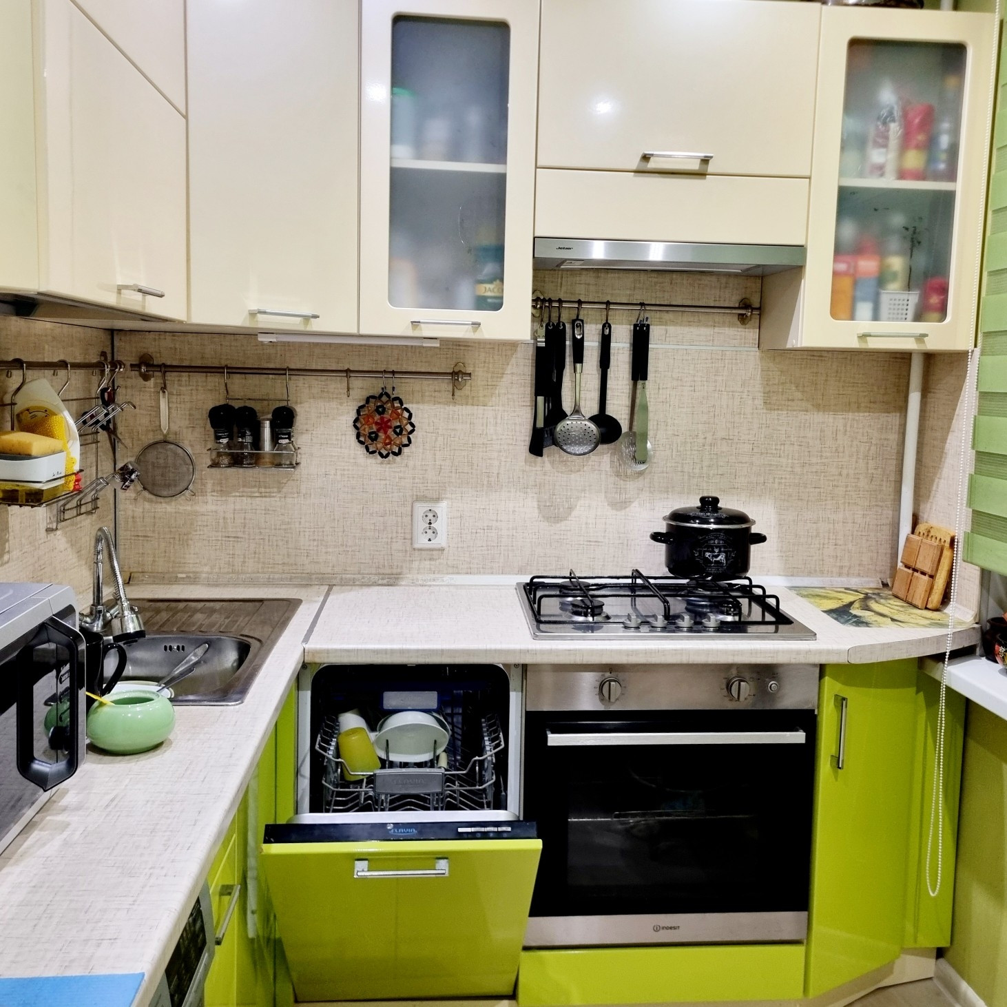 Покупателям остаётся встроенная кухня с  встроенной бытовой техникой: посудомоечная машина, варочная поверхность и духовой шкаф.