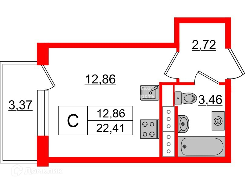 Общая площадь 22.41 м2