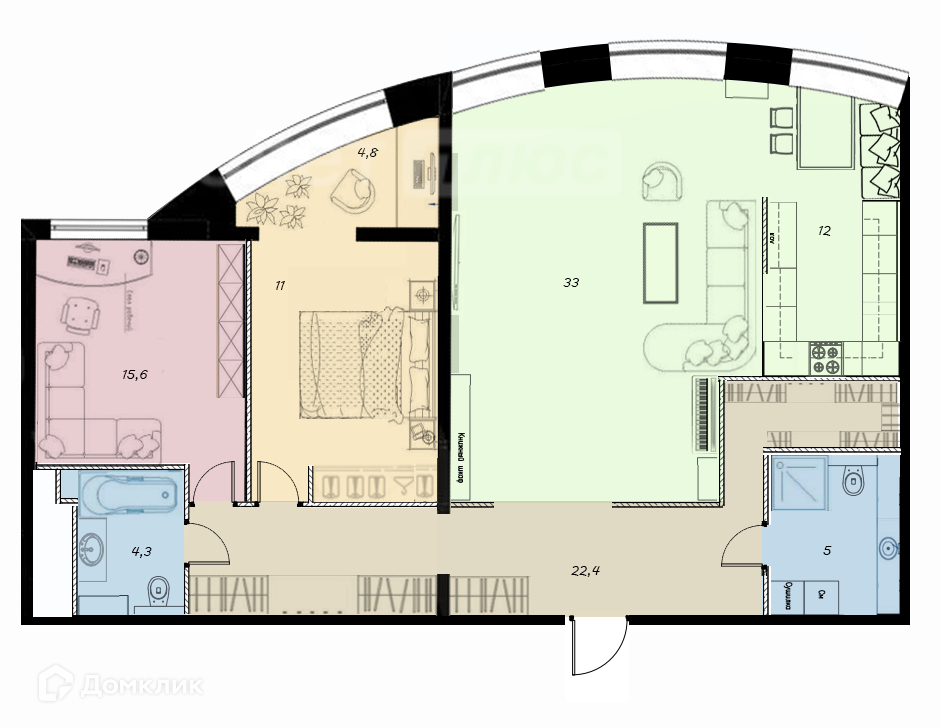 Первая комната располагает площадью 15.6 кв.м., а вторая - 15.8 кв.м. третья комната 33.0 квадратных метра Просторная кухня-гостиная - это идеальное место для семейных посиделок и приема гостей. Ее площадью 12.0 кв.м., она станет центром вашего дома, где рождаются вкусные блюда и самые теплые воспоминания. Из окон квартиры на 18 этаже открывается великолепный, живописный вид на парк с прудами.