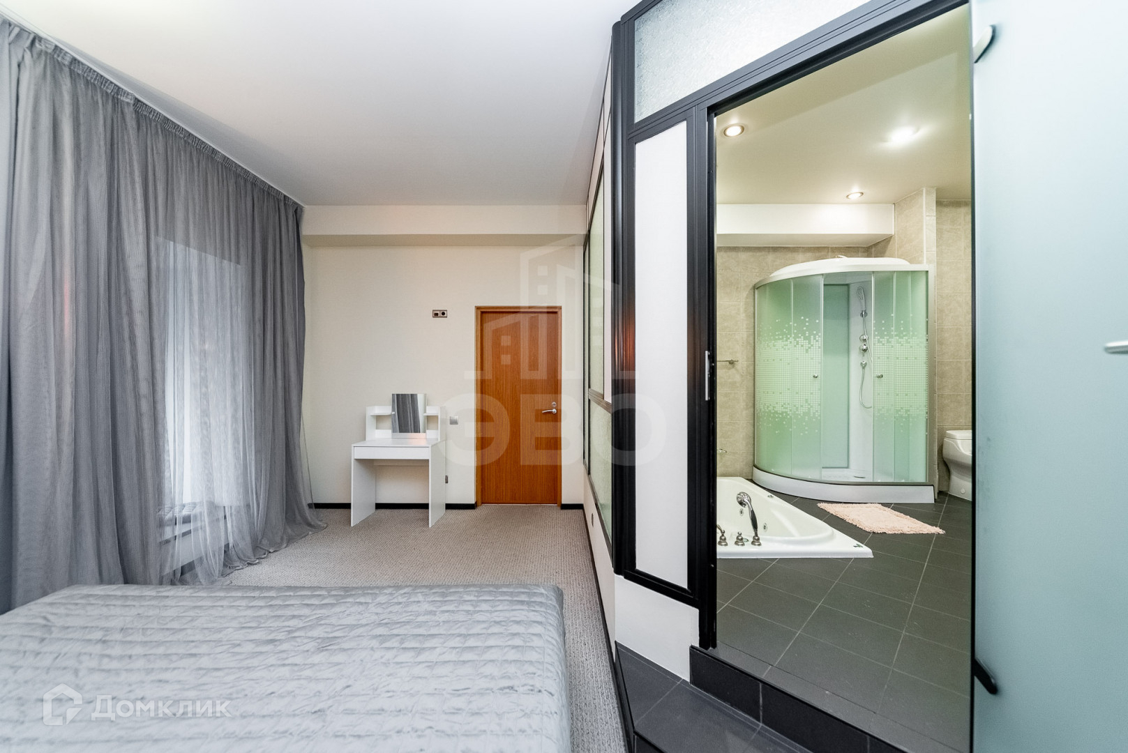 Вишенка квартиры-это большая ванная комната, разделенная стеклянной перегородкой. На уровне пола джакузи для двоих, установлена НОВАЯ душевая кабина финской фирмы Deto, блок для белья и стирки с машиной SMEG. Пол в ванной комнате и кухонной зоне дополнительно оборудован электрическим обогревом.