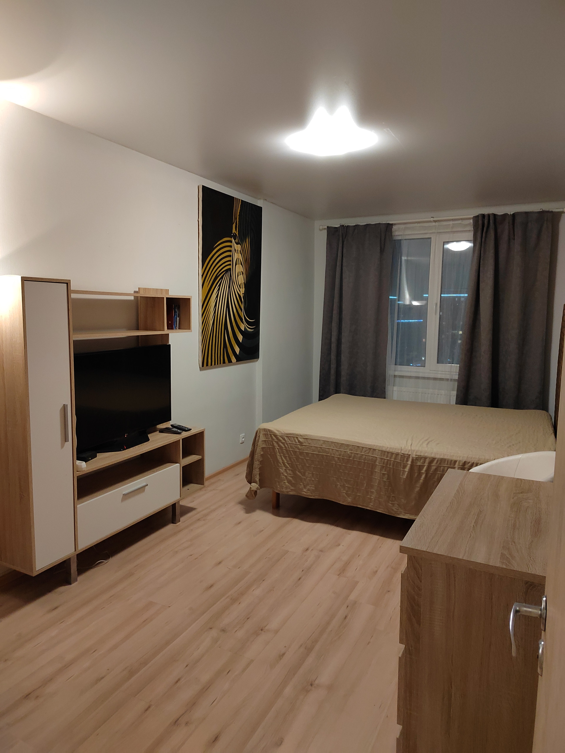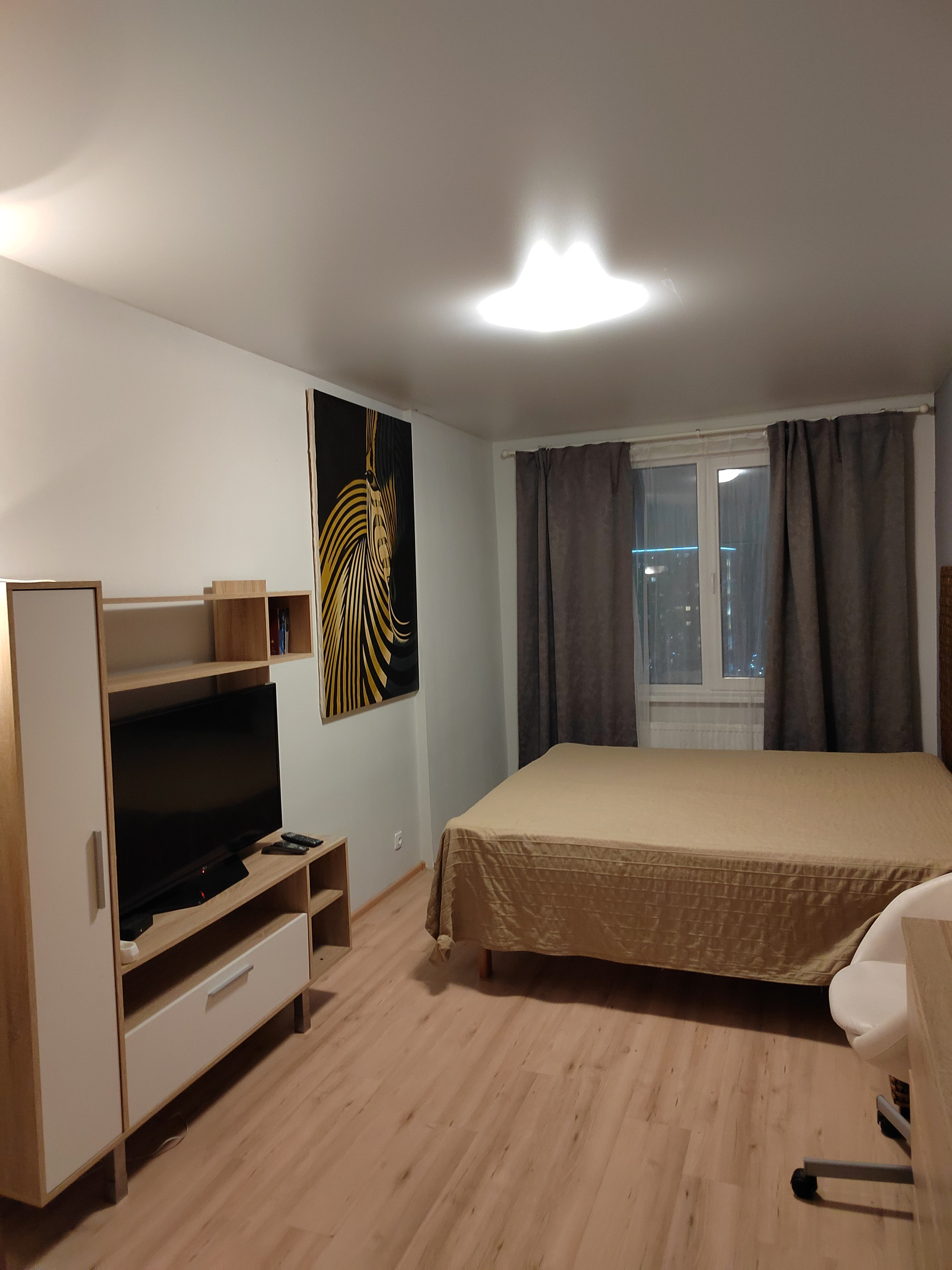 В комнате имеется 2-х спальная кровать , шкаф, ЖК телевизор.