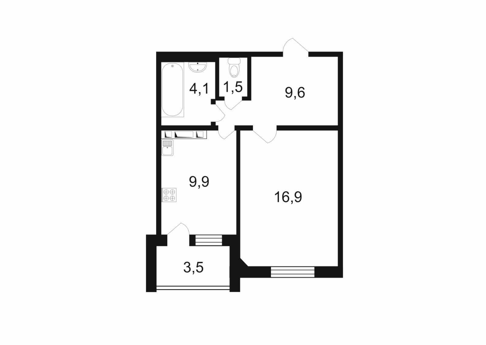 Площадь кухни 9.9 м2